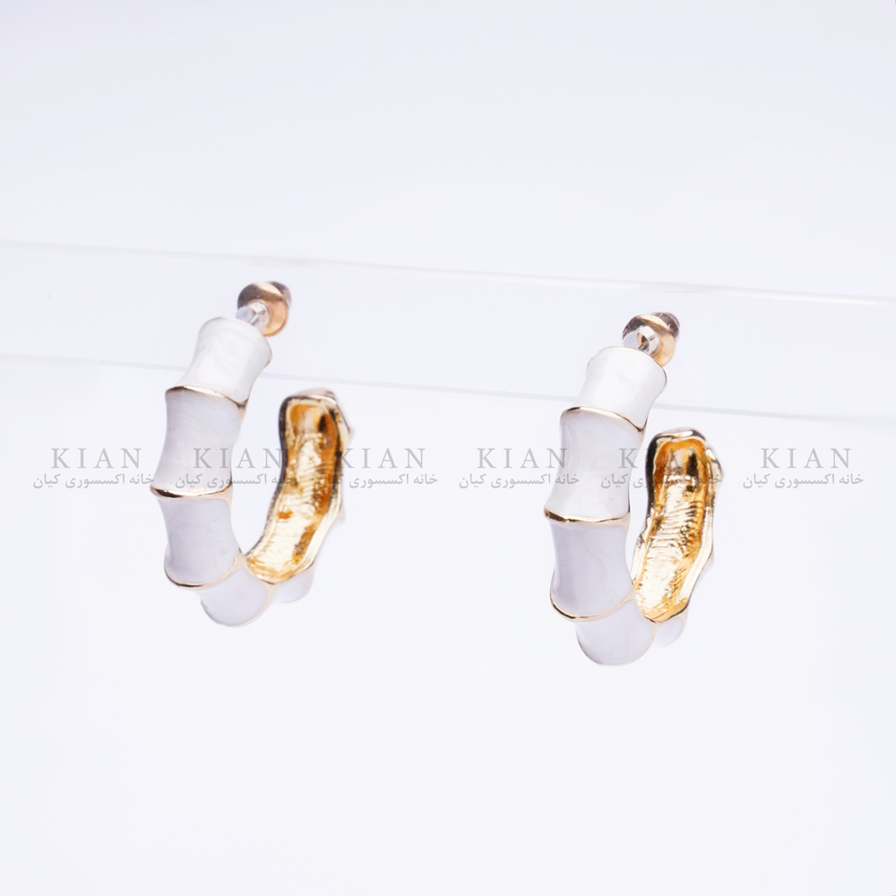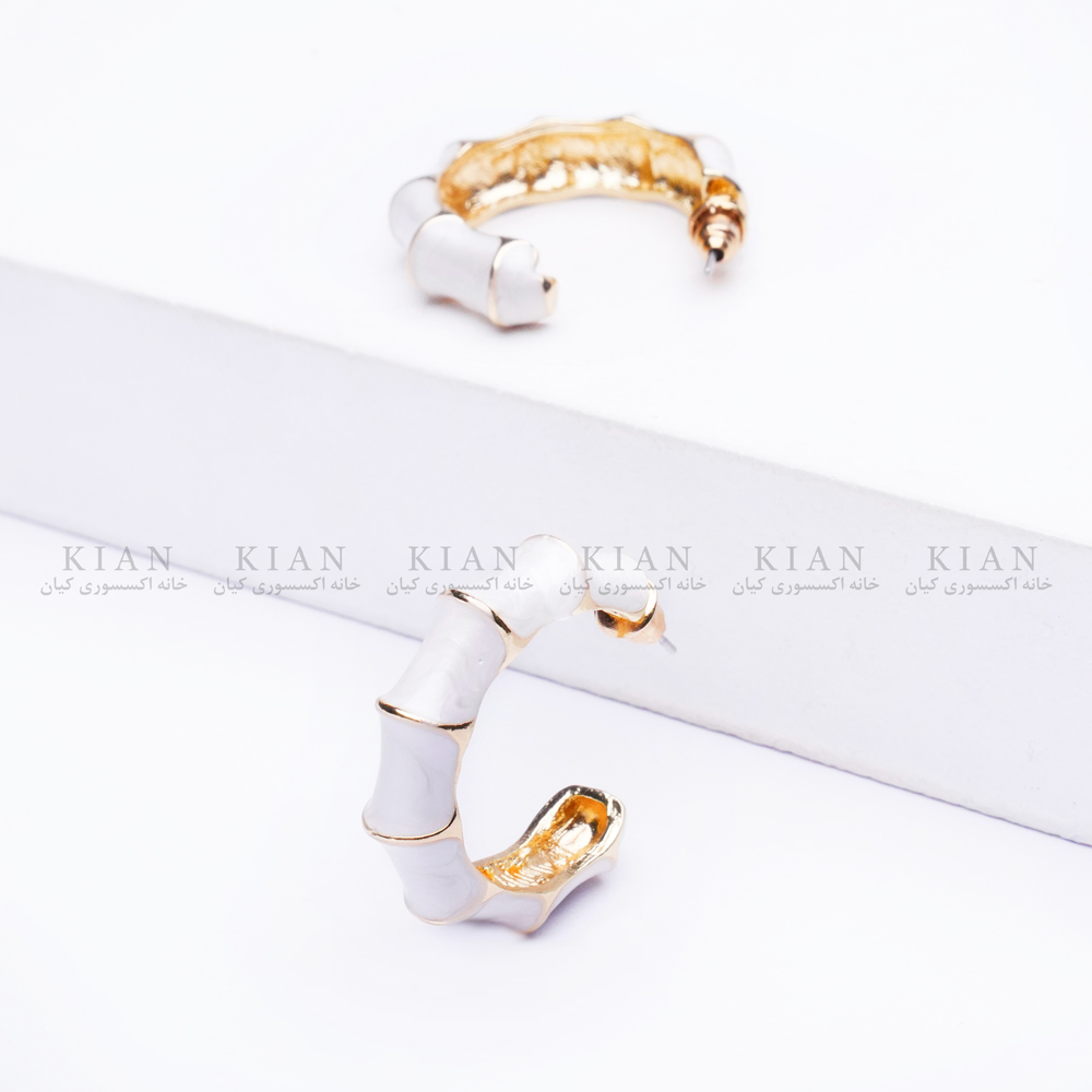 گوشواره نیم حلقه استخوانی سفید از مجموعه ی خاص خانه اکسسوری کیان با طراحی متفاوت و رنگ سفید خاص، جلوه ای جسورانه و مدرن به استایل شما می بخشد.