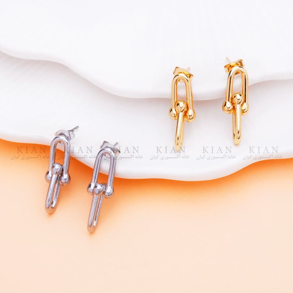 گوشواره‌های تیفانی از مجموعه‌ی خاص خانه اکسسوری کیان، با طراحی ساده و در عین حال فوق‌العاده شیک، نمادی از استایل مدرن و مینیمال هستند. فرم هندسی و براق این مدل در دو رنگ طلایی و نقره‌ای عرضه شده و جلوه‌ای لوکس و چشم‌نواز به چهره می‌بخشد.
