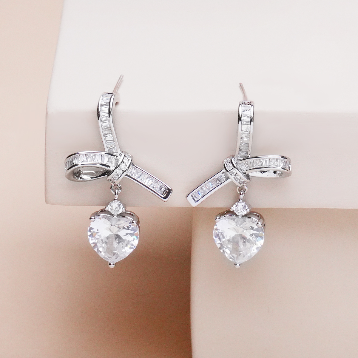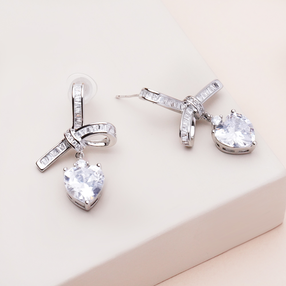 گوشواره پاپیون قلب نگین دار