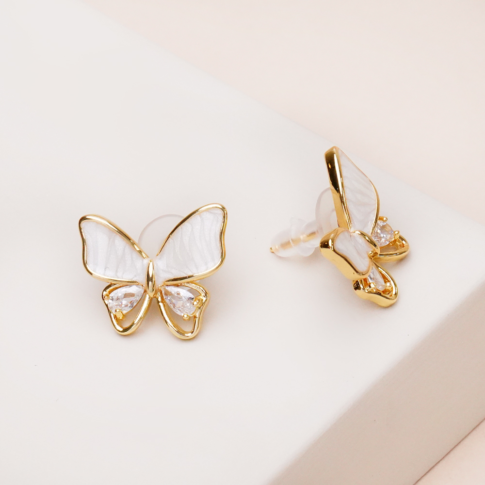 گوشواره پروانه سفید صدف طلایی با طراحی لطیف و الهامگرفته از طبیعت، ترکیبی چشمنواز از رنگ سفید صدفی و فریم طلایی براق را ارائه میدهد. فرم ظریف پروانه در کنار بافت ملایم صدف، جلوهای دخترانه و رمانتیک ایجاد کرده که بهراحتی استایل شما را خاصتر میکند.