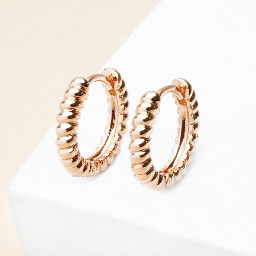 گوشواره ژوپینگ بافتدار طلایی با طراحی خاص و سطح بافتدار، جلوهای متفاوت و چشمنواز به استایل شما میبخشد. بافت ظریف روی بدنه در کنار رنگ طلایی براق، درخششی چندبعدی ایجاد میکند که در نور جلوهای لوکس و جذاب دارد.