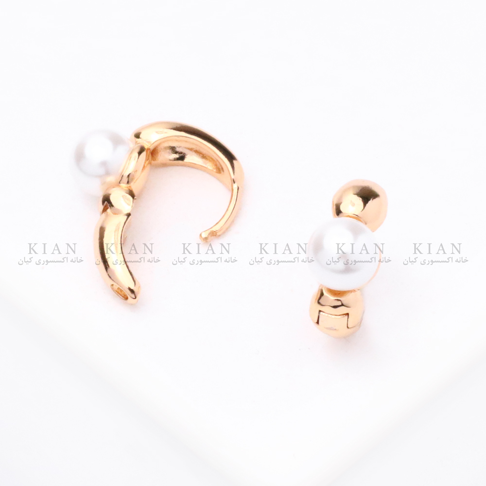 طراحی این گوشوارهها به شکل یک هلال طلایی کوچک است که در مرکز آن یک مروارید تکدرشت و براق قرار گرفته است. این مروارید با درخشش ملایم خود، جلوهای بسیار تمیز و کلاسیک به مدل میدهد و باعث میشود گوشواره روی گوش کاملاً چشمگیر دیده شود.