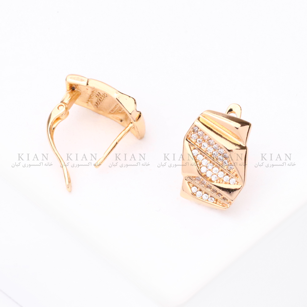 این گوشواره‌ها با فرم هلالی طراحی شده‌اند و سطح آن‌ها با نوارهای مورب نگین‌دار تزئین شده است. نگین‌های ریز و درخشان روی این رگه‌ها، هنگام برخورد نور برق فوق‌العاده‌ای ایجاد می‌کنند و مدل را برای استایل‌های رسمی، مهمانی‌ها و مناسبت‌های خاص بسیار جذاب می‌سازند.