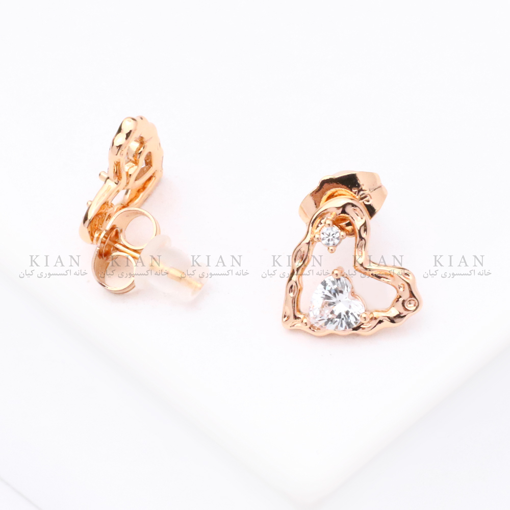 این گوشوارهها با فرم قلب ظریف و برجسته طراحی شدهاند و در مرکز هر قلب، یک نگین شفاف و درخشان قرار گرفته است که با کوچکترین حرکت نور، برق فوقالعادهای ایجاد میکند. خطوط طلایی و لطیف دور قلب نیز جلوه مدل را براقتر و شیکتر میکند.