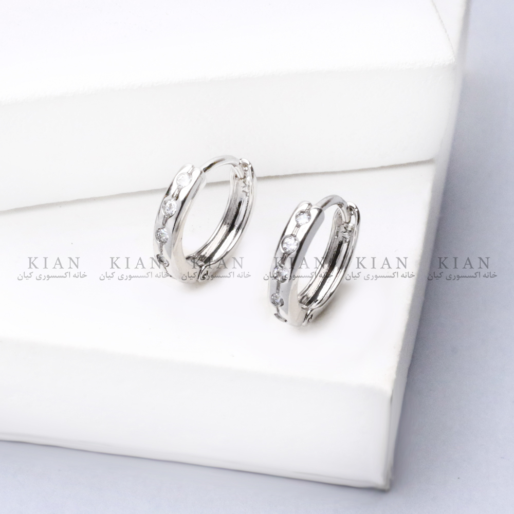 این گوشواره‌ها به شکل حلقه ریز طراحی شده‌اند و سطح بیرونی آن‌ها با ردیفی از نگین‌های سفید و کوچک پوشیده شده است. این نگین‌ها هنگام برخورد نور، برق لطیف و جذابی ایجاد می‌کنند و استایل گوشواره را از سادگی خارج کرده و به آن جلوه‌ای برازنده و دخترانه می‌بخشند.