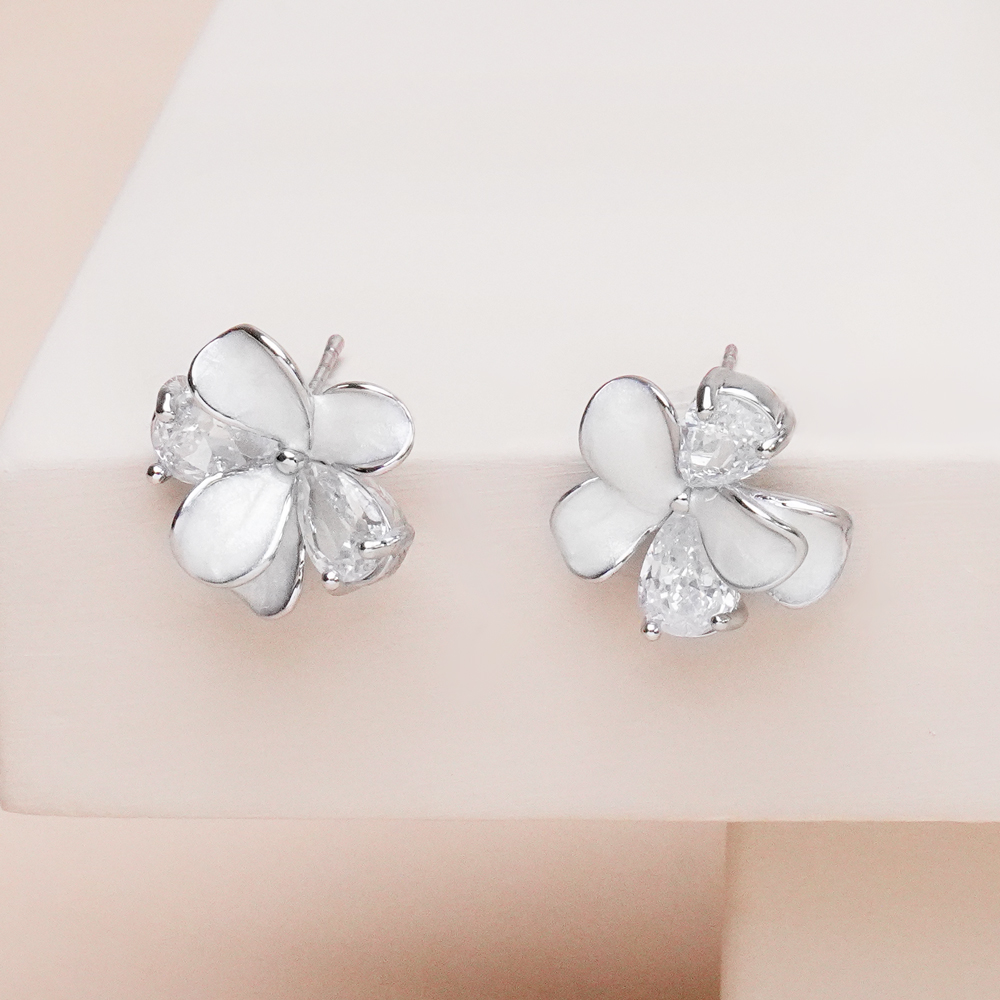 گوشواره گل سفید نقره ای
