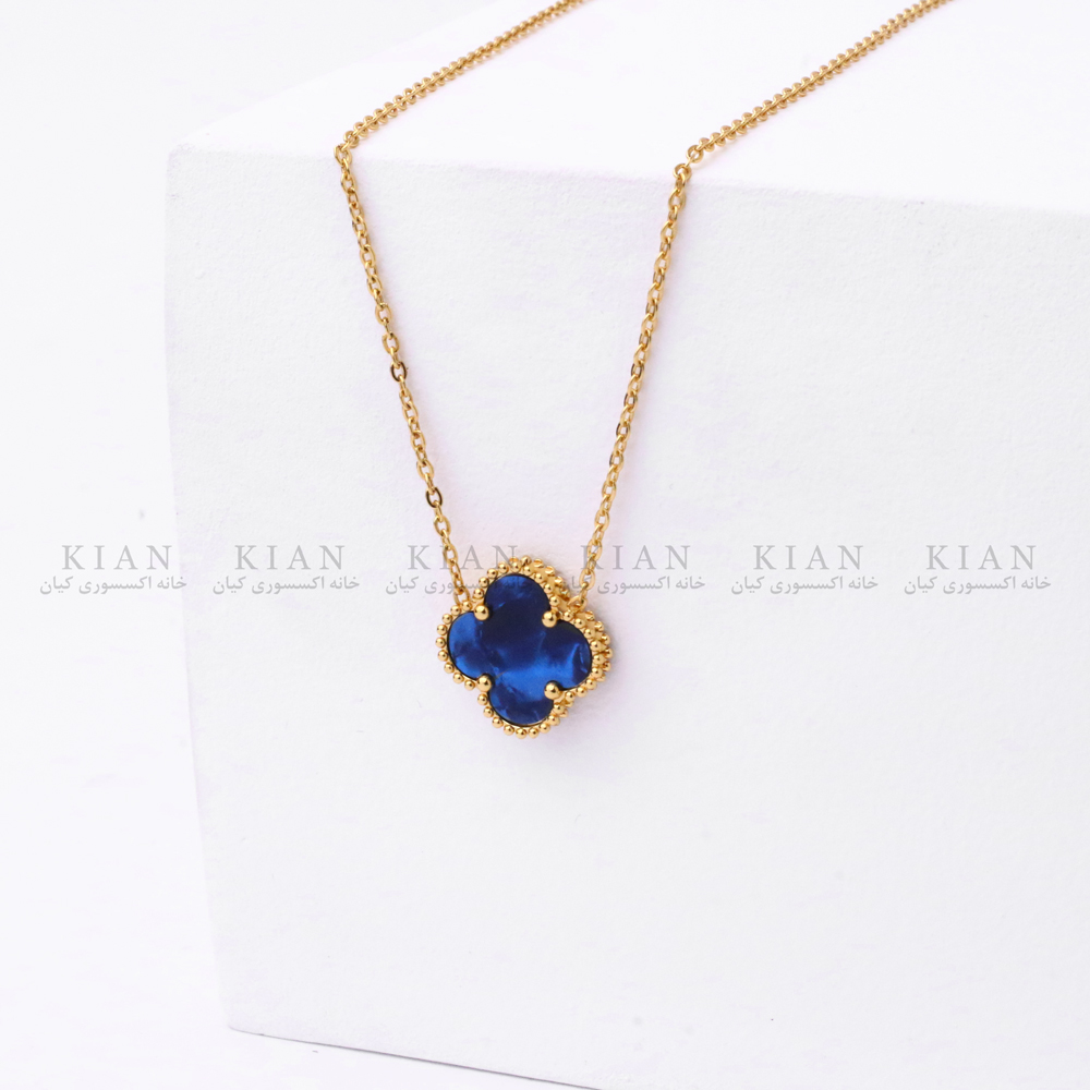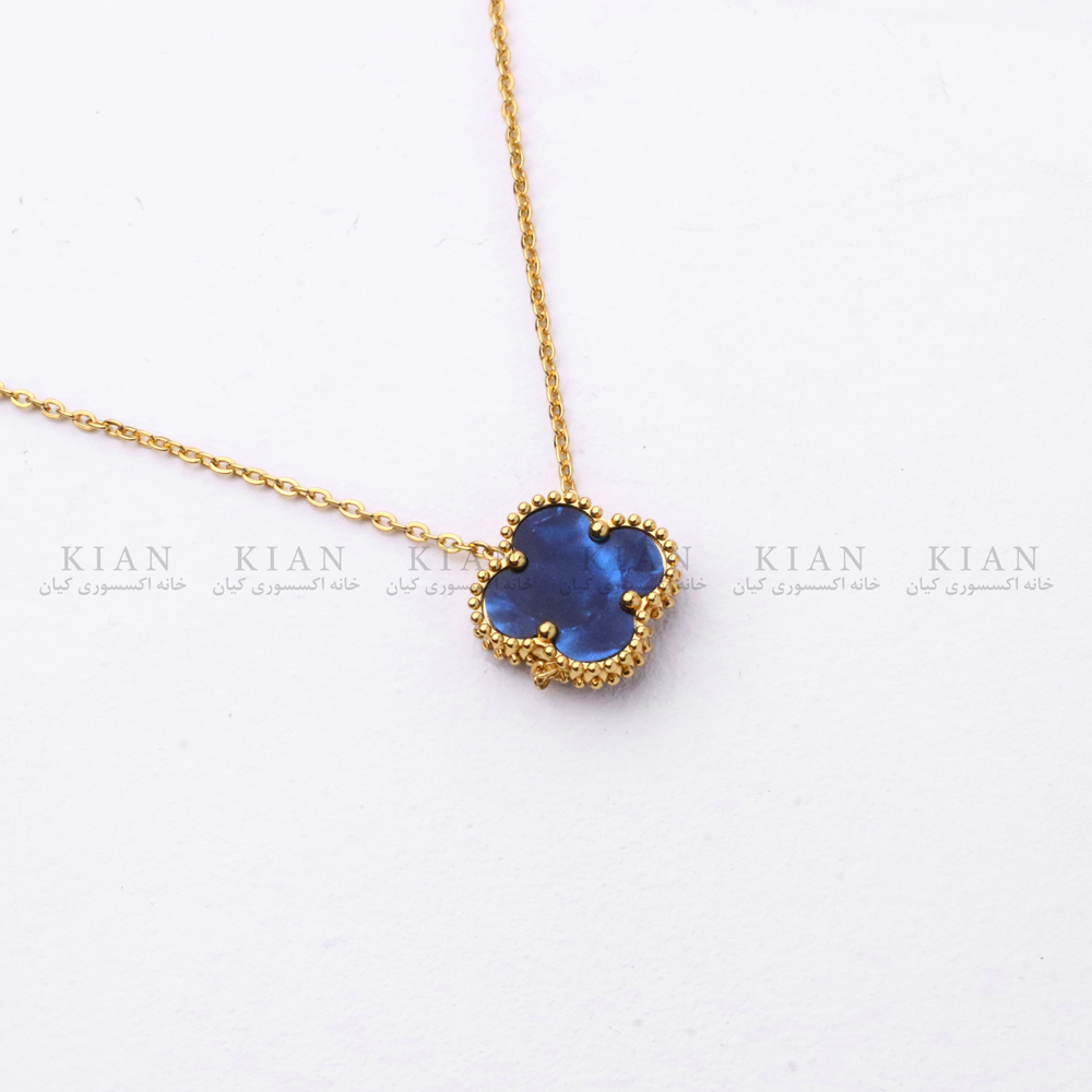 تک آویز ونکلیف سرمه ای از برند خانه اکسسوری کیان، نمادی از آرامش، لطافت و ظرافت است. طراحی کلاسیک گل چهارپر در سبک ونکلیف، در ترکیب با رنگ سرمه ای درخشان و قاب طلایی براق، جلوه‌ای چشم‌نواز و دل‌نشین به استایل شما می‌بخشد.