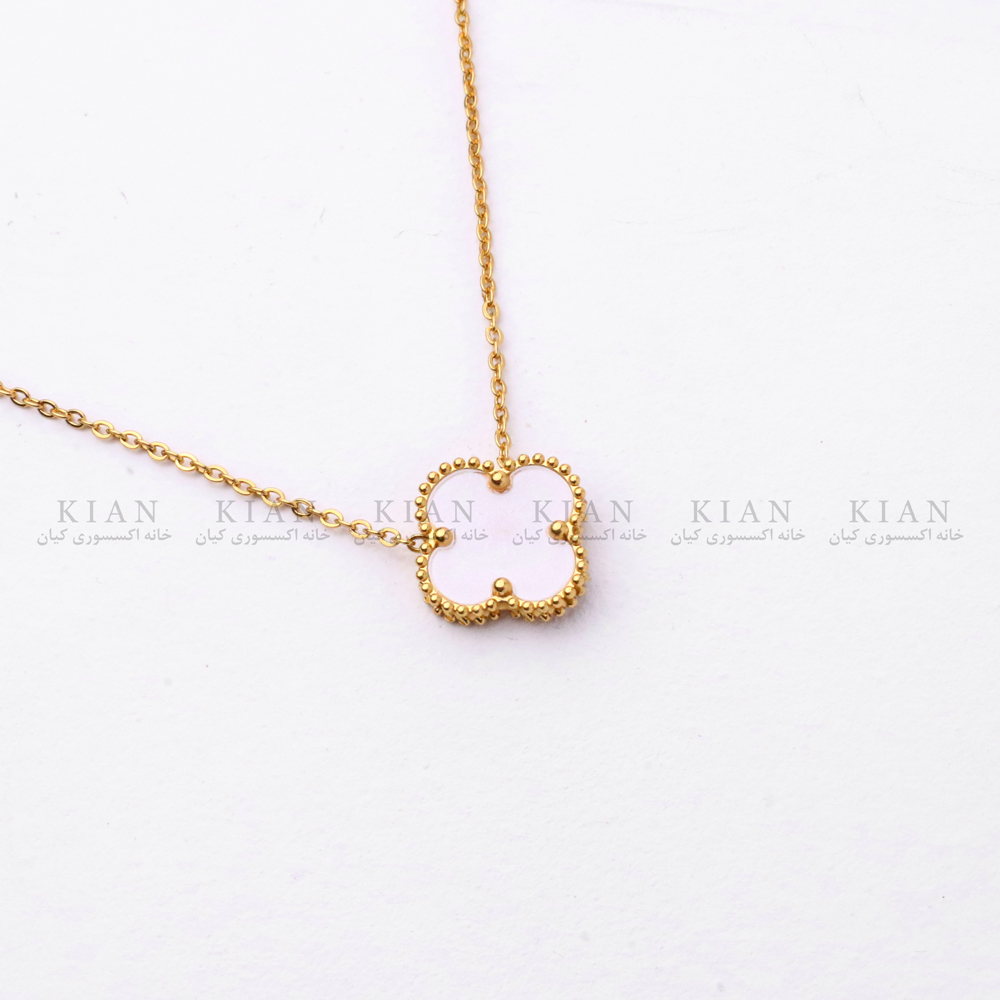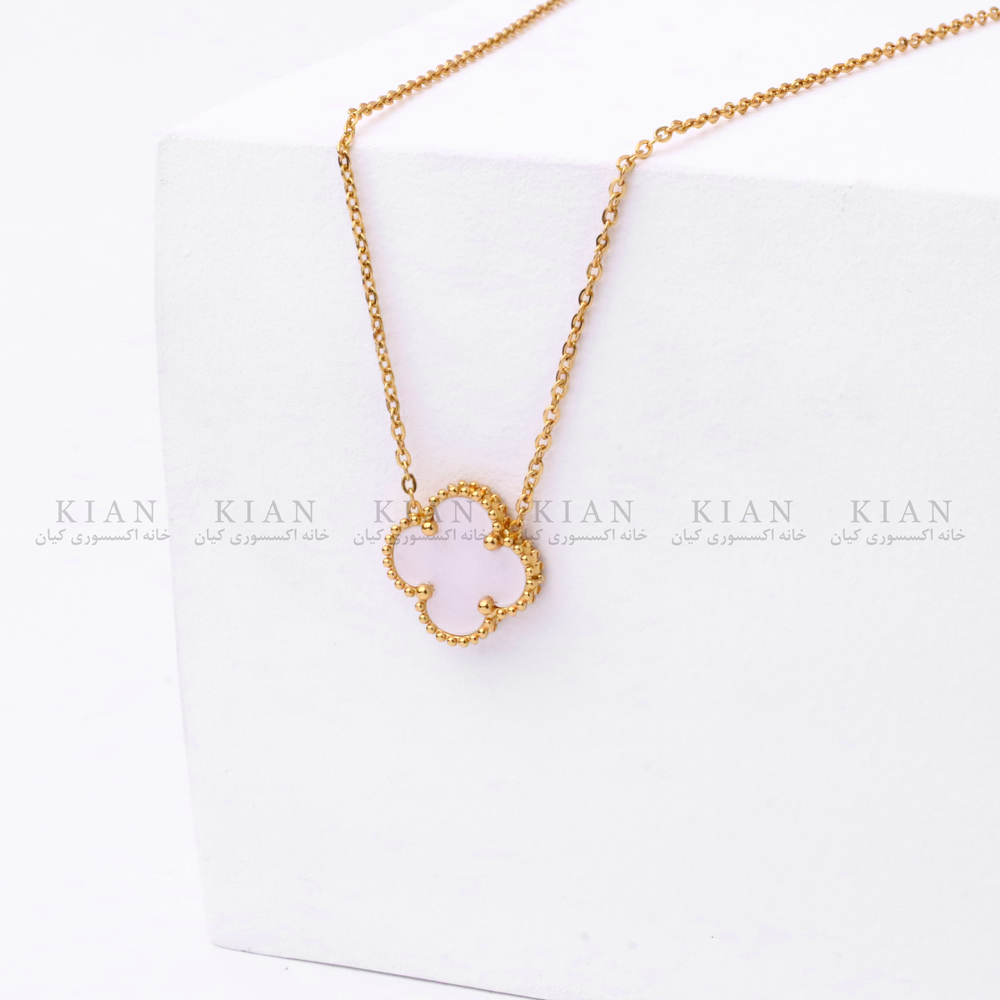 تک آویز ونکلیف صورتی کم رنگ از برند خانه اکسسوری کیان، یکی از خاص‌ترین و محبوب‌ترین مدل‌های مجموعه ونکلیف است که با رنگی لطیف و درخشان، جلوه‌ای دخترانه و شیک به استایل شما می‌دهد. طراحی کلاسیک گل چهارپر با سنگ صورتی کم رنگ در قاب طلایی ظریف، ترکیبی از ظرافت و درخشش لوکس را به نمایش می‌گذارد.
