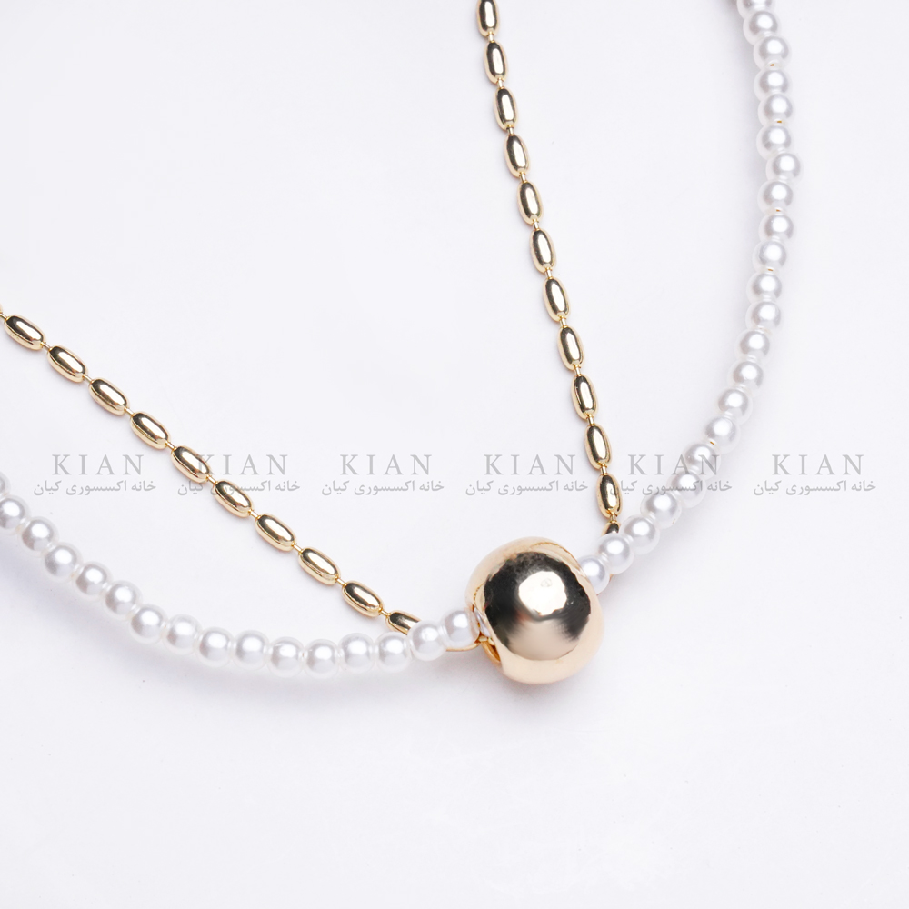 گردنبندهای گوی و مروارید ، گردنبند مروارید تک نگین طلایی