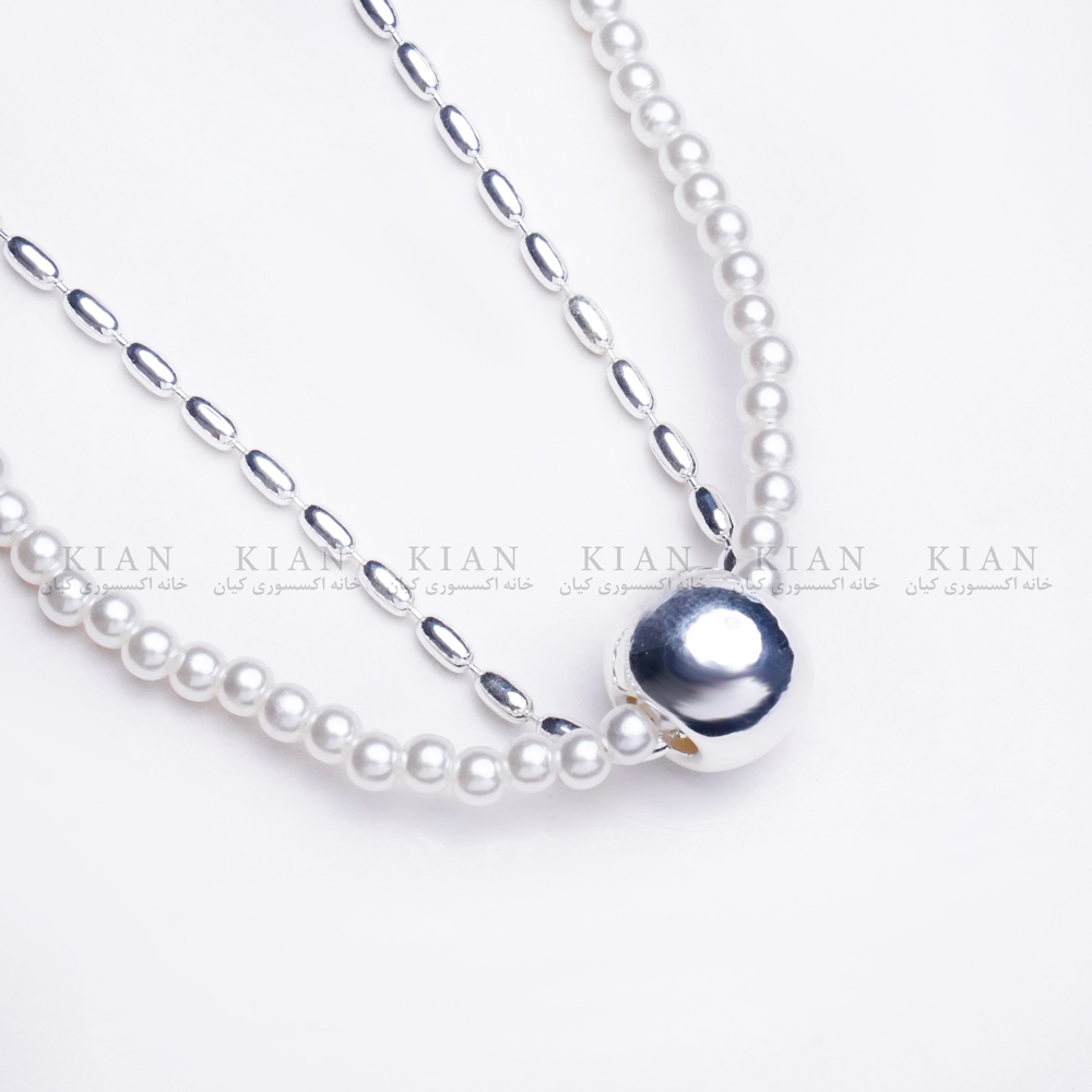 گردنبندهای گوی و مروارید ، گردنبند مروارید تک نگین نقره ای