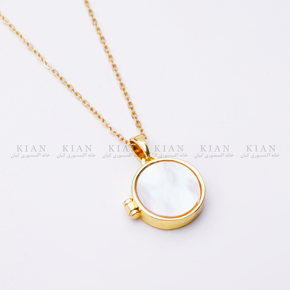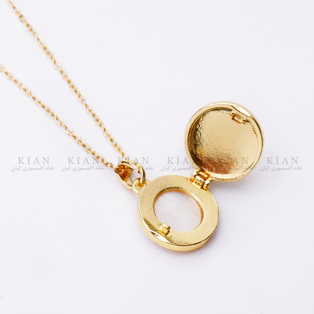 پلاک این گردنبند بهصورت دایرهای صیقلی طراحی شده و ظاهر آینهای آن باعث میشود نور را به زیبایی منعکس کند؛ به همین دلیل روی گردن جلوهای بسیار درخشان و شیک دارد. قاب طلایی دور پلاک، طراحی را کاملتر کرده و استایل آن را رسمیتر و لاکچریتر نشان میدهد. همچنین این گردنبندها باز میشوند و قاب عکس دارند.