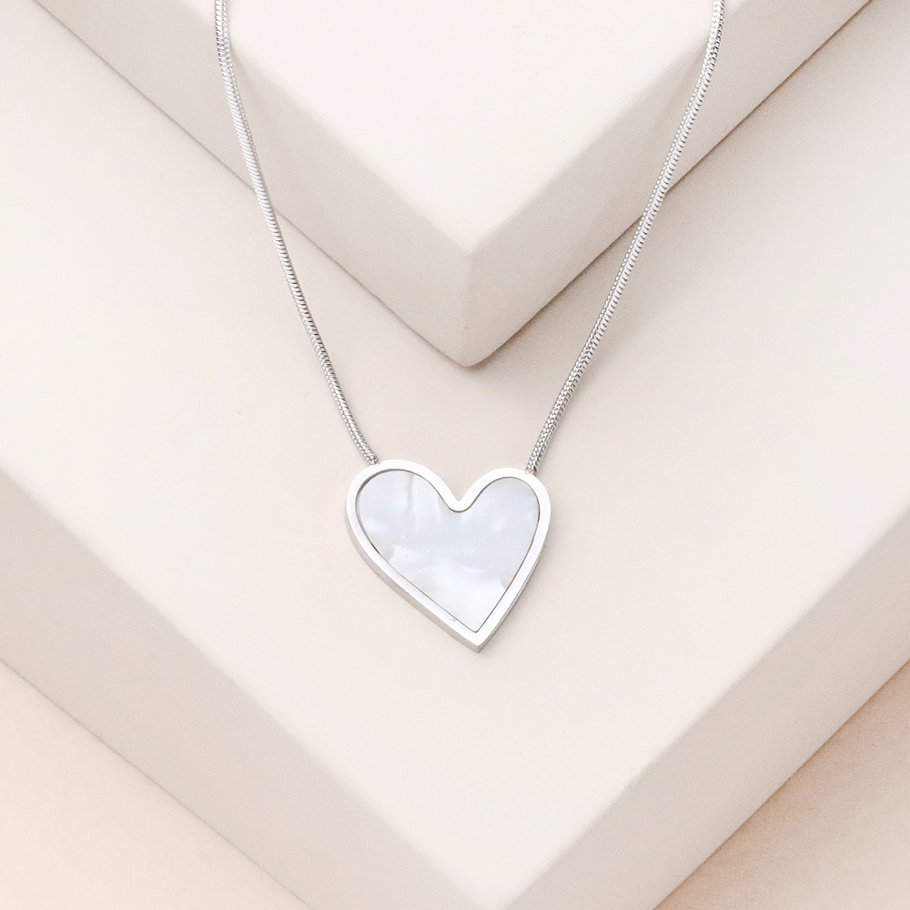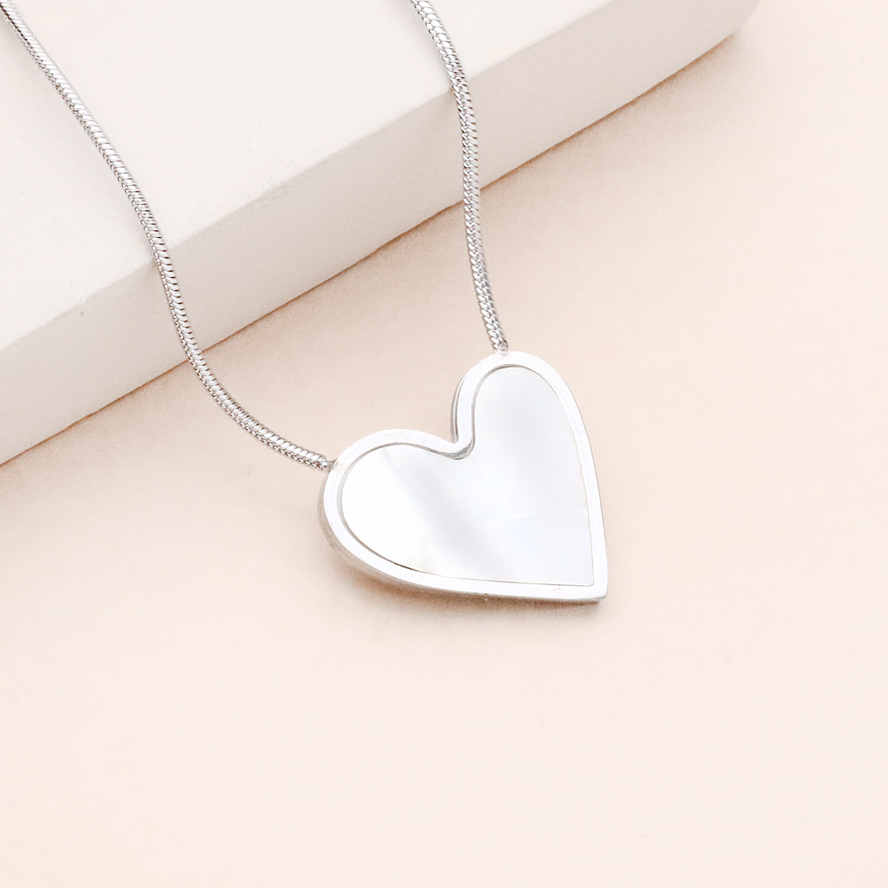 گردنبند تک قلب سفید نقره ای