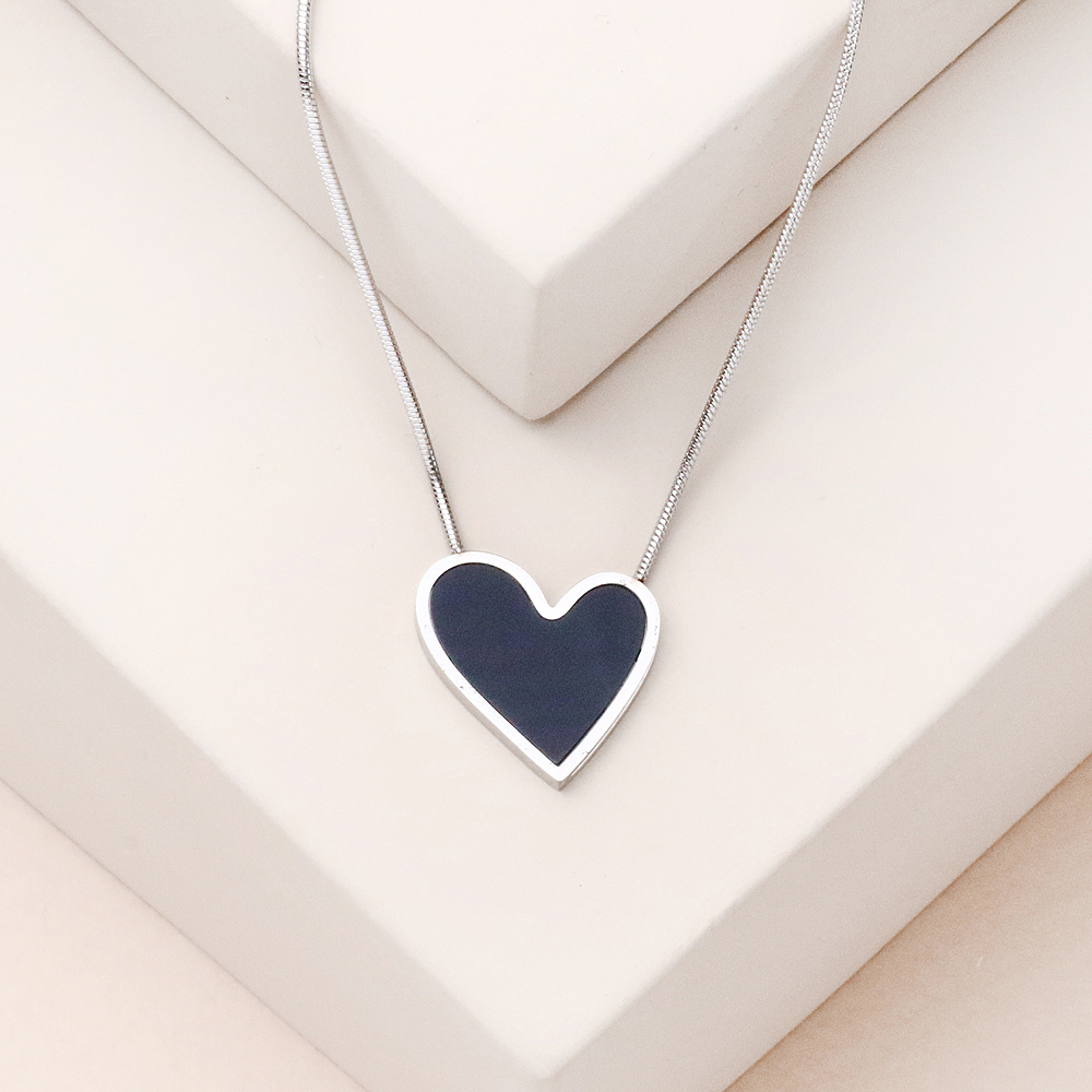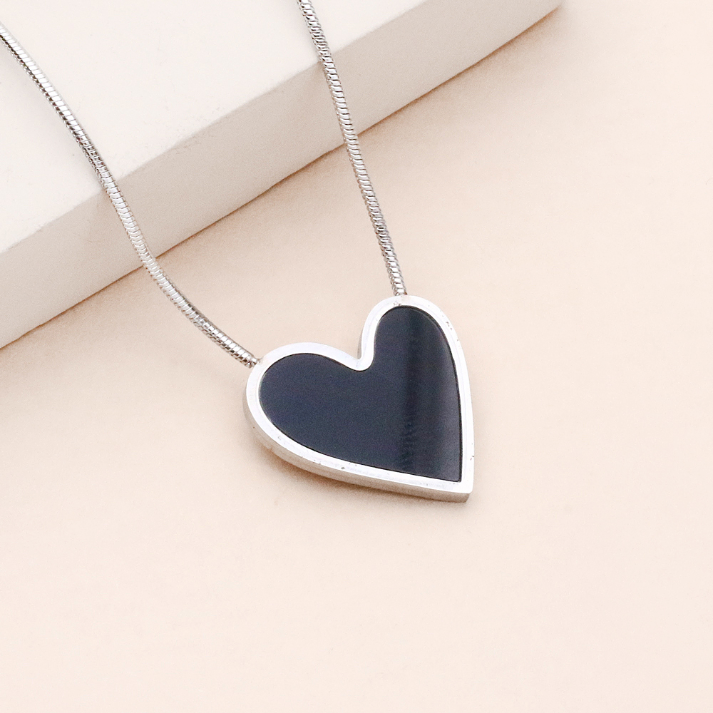 گردنبند تک قلب مشکی نقره ای با طراحی ظریف و مینیمال، انتخابی دلنشین برای افرادی است که به اکسسوری‌های ساده و شیک علاقه دارند. پلاک قلبی مشکی با قاب نقره‌ای، جلوه‌ای لطیف، تمیز و مدرن ایجاد کرده و به‌راحتی با استایل‌های روزمره و رسمی ست می‌شود.