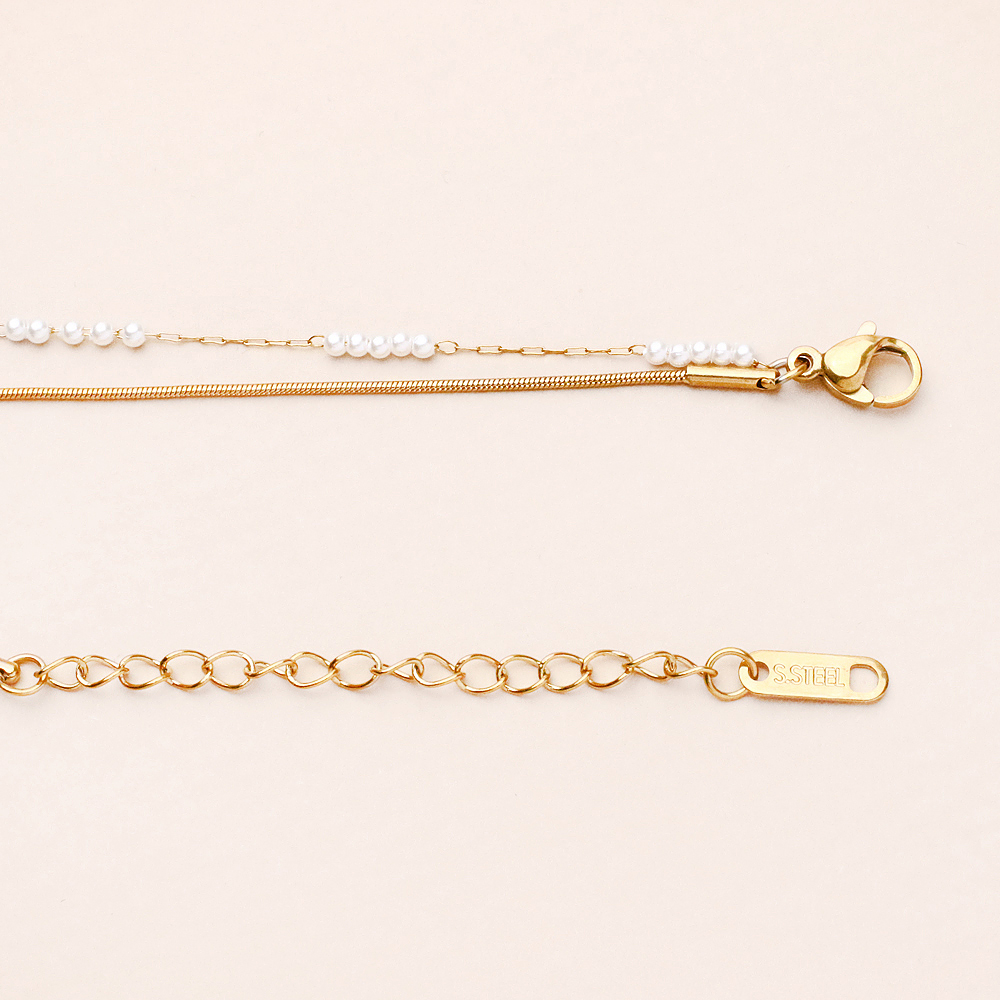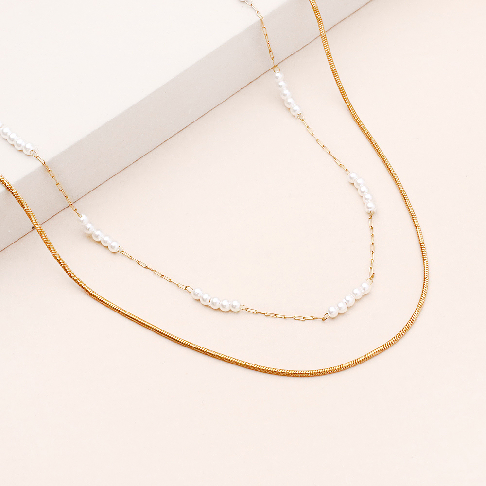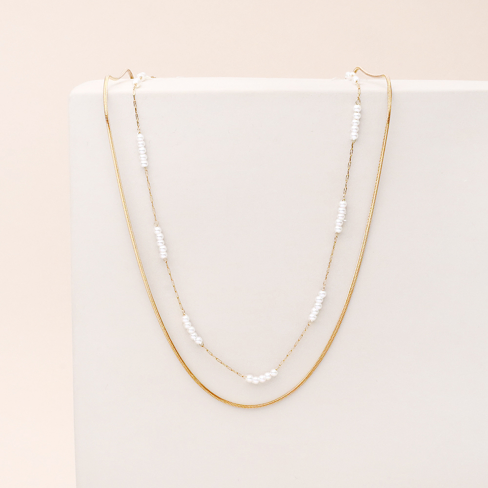 این مدل بهدلیل طراحی دو ردیفه، ظاهری کاملتر و جذابتر دارد و بهراحتی میتواند با لباسهای ساده، رسمی یا مجلسی ست شود. اگر به دنبال گردنبندی هستید که هم ظرافت داشته باشد و هم کمی جلوهی خاصتر و متفاوتتر، این مدل انتخابی بسیار مناسب است.