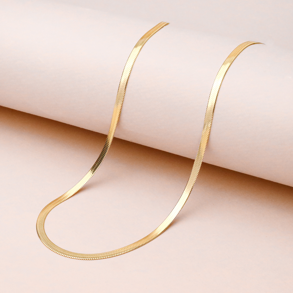 گردنبند طلایی ماری پهن با طراحی جسورانه و انعطافپذیر، جلوهای شیک و چشمگیر به استایل شما میبخشد. فرم ماری پهن این گردنبند، بهخوبی روی گردن مینشیند و ظاهری قدرتمند و مدرن ایجاد میکند.