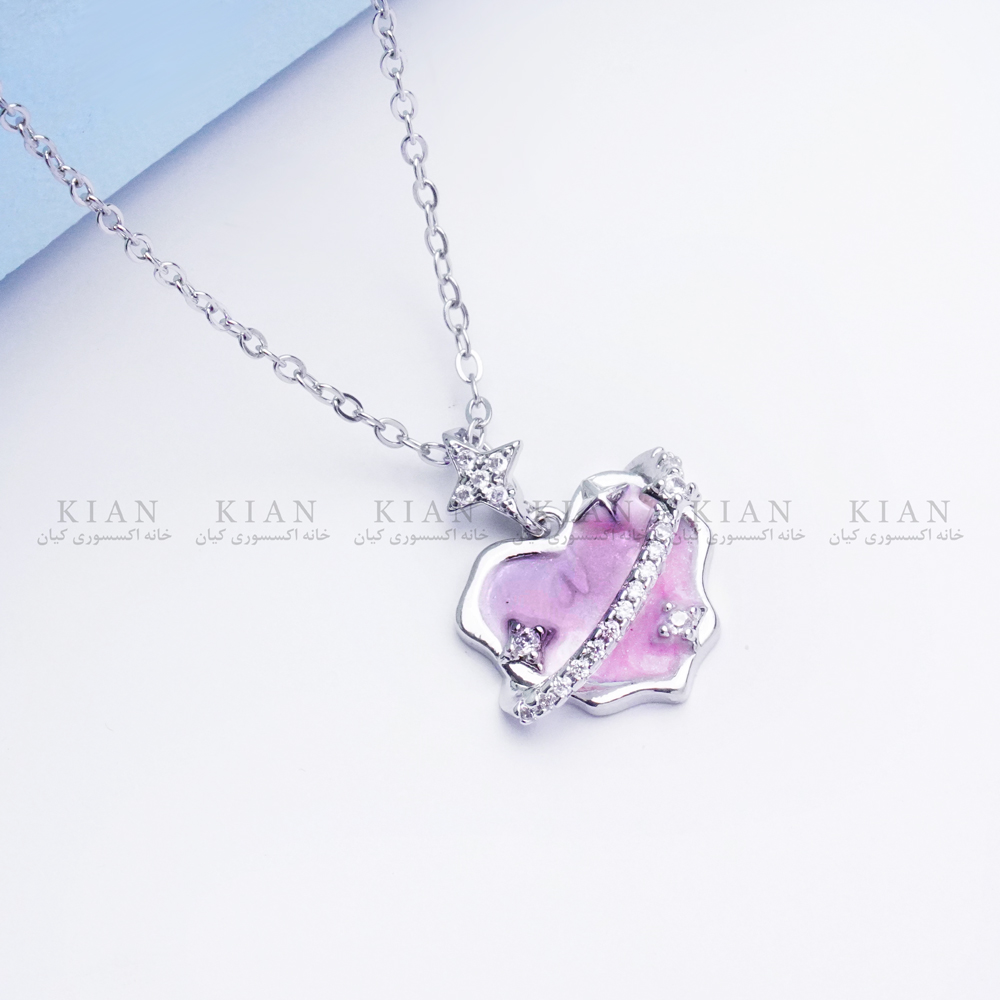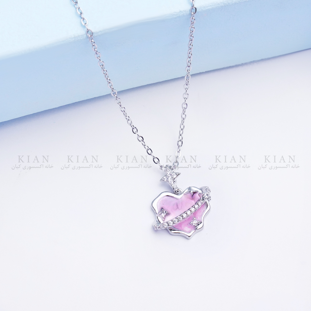 درخشش نگین صورتی در نور، استایلی لطیف و عاشقانه ایجاد میکند که برای استفاده روزمره یا هدیه دادن به عزیزان انتخابی بینقص است. زنجیر نقرهای براق در کنار قاب قلب، ترکیبی هماهنگ و زیبا ساخته است.