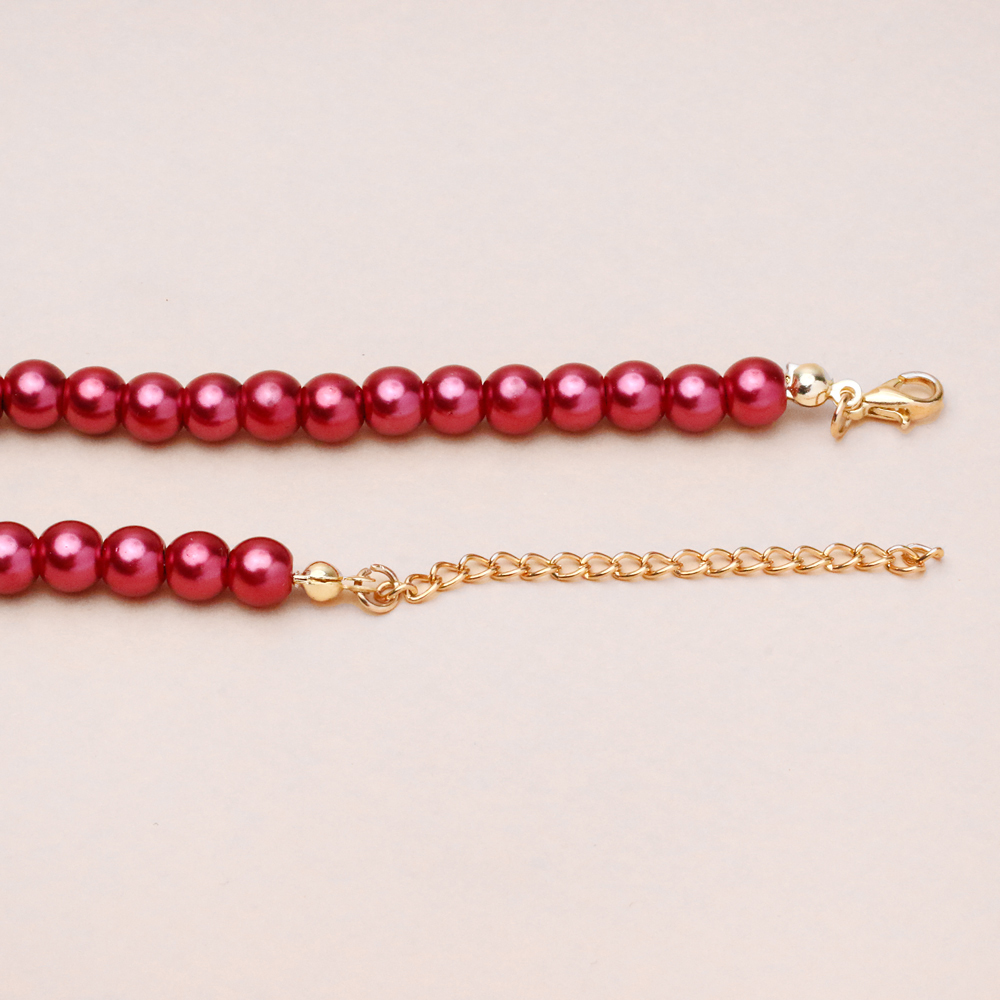 گردنبند مروارید زرشکی با رنگ عمیق و خاص، جلوه‌ای شیک و متفاوت به استایل شما می‌بخشد. مرواریدهای زرشکی، حس اصالت و وقار ایجاد کرده و ظاهر گردنبند را چشم‌نواز و متمایز نشان می‌دهند.