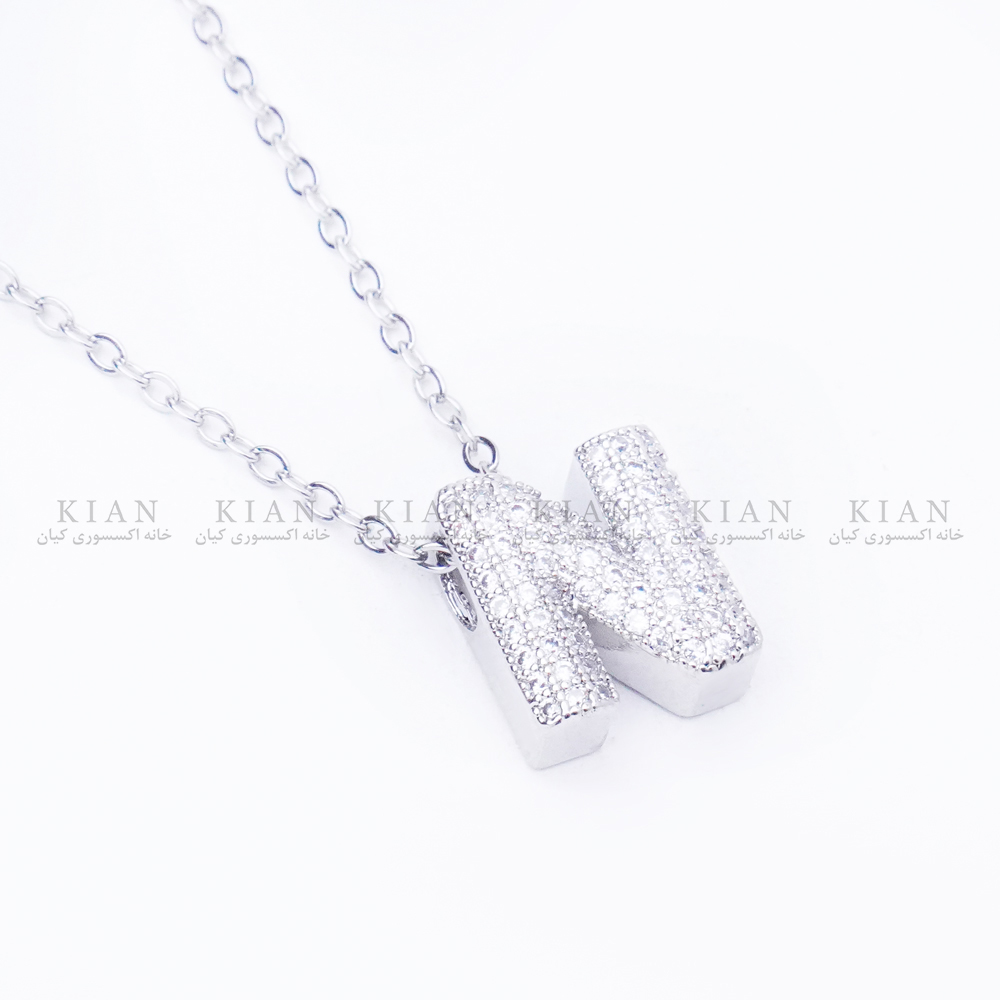 گردنبند نقره ای N نگین دار