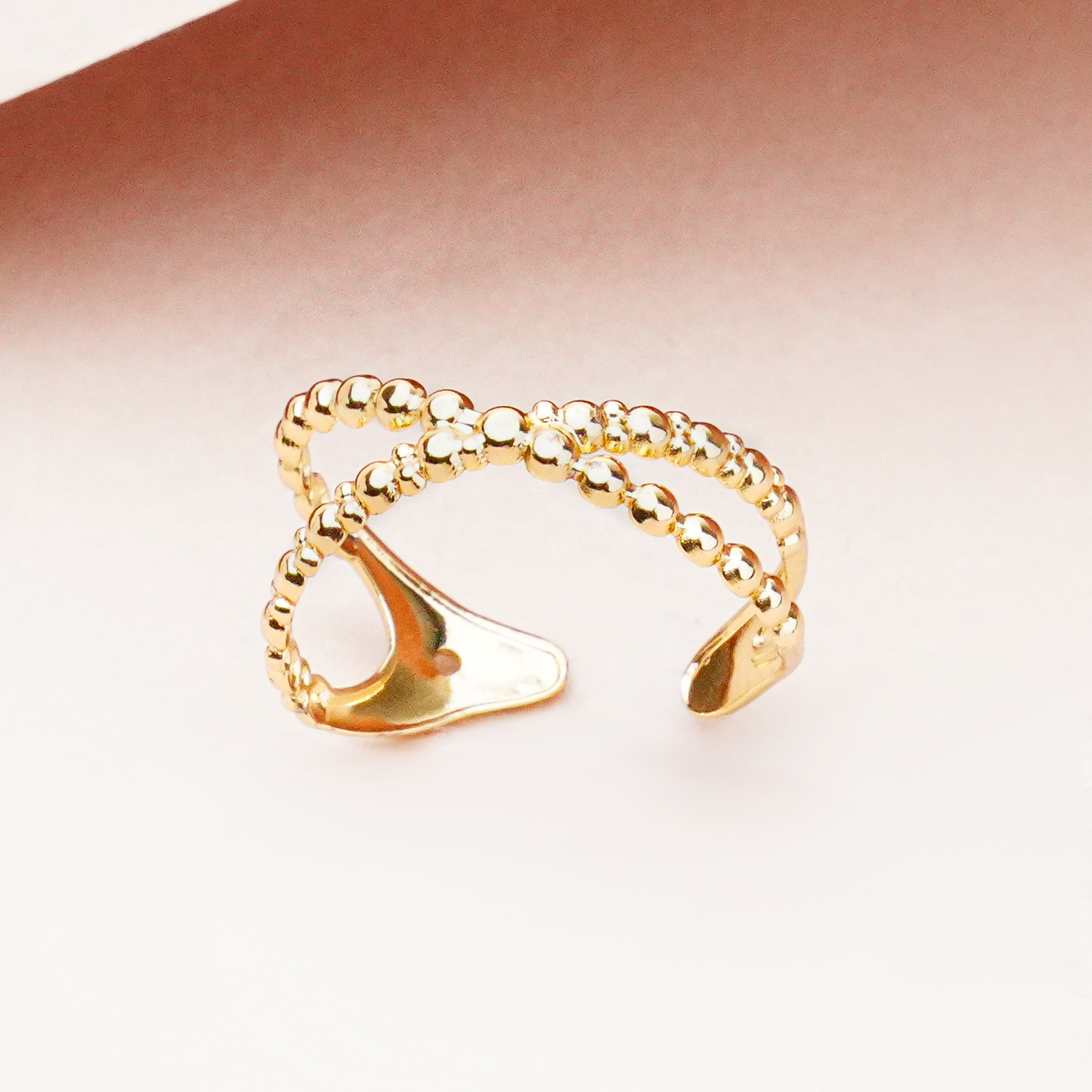یه انگشتر ظریف و خاص با طراحی پیچ‌خورده و جزئیات ساچمه‌ای که حس حرکت و بافت رو هم‌زمان روی دست ایجاد می‌کنه. ترکیب پیچ ملایم با ساچمه‌های ریز باعث می‌شه انگشتر ساده به نظر نیاد، اما همچنان ظرافتش رو حفظ کنه. از اون مدل‌هاییه که هم برای استفاده‌ی روزمره عالیه، هم کنار انگشترهای دیگه ترکیب شیکی می‌سازه و استایل رو کمی خاص‌تر می‌کنه.