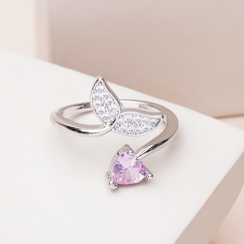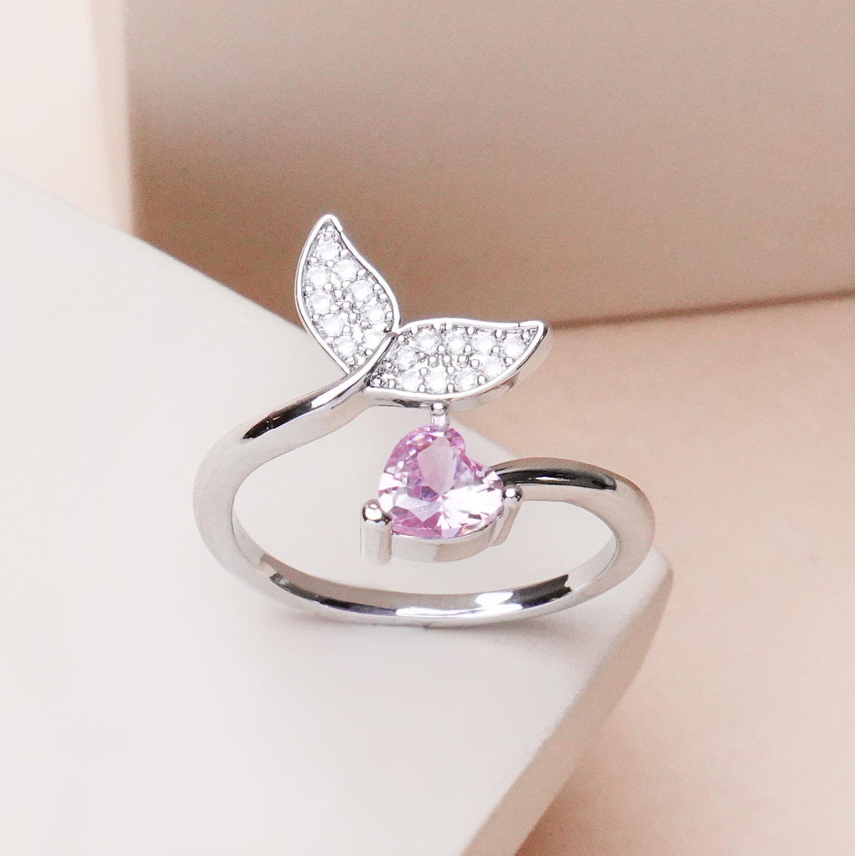 انگشتر دم وال و قلب صورتی فانتزی با نماد دم وال و نگین قلبیشکل، تلفیقی هنرمندانه از رویا و واقعیت است که با ظرافت خاص خود، روحی تازه به استایل دخترانه شما میبخشد.