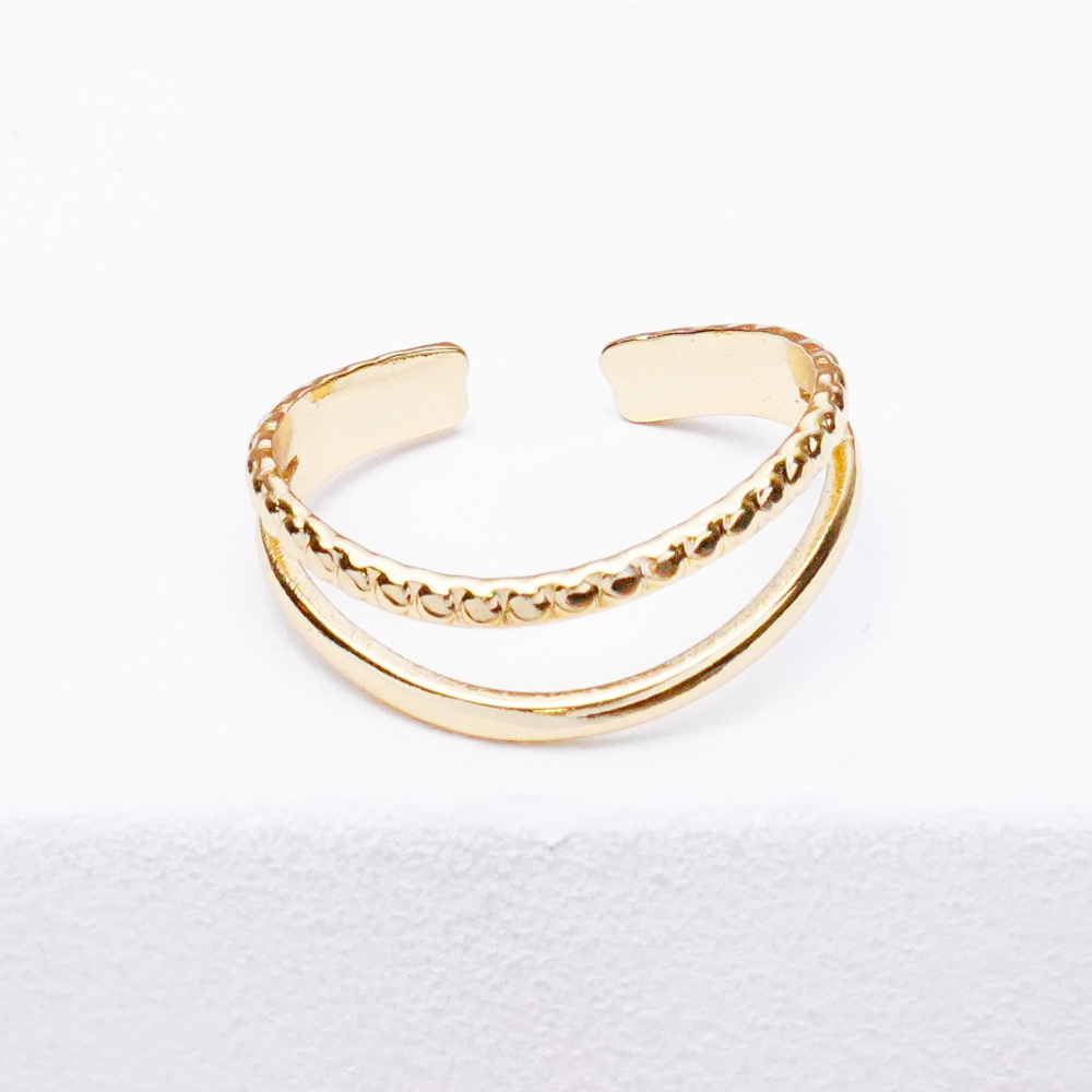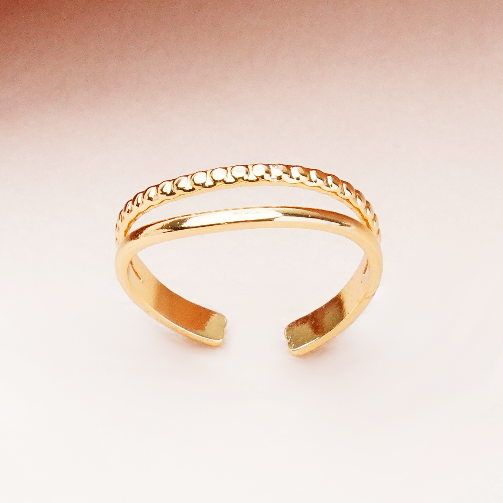 انگشتر دو رینگ تک موج با طراحی خاص و الهامگرفته از فرم موج، جلوهای پویا و مدرن به استایل شما میبخشد. اتصال دو رینگ با یک موج ظریف، حرکت و هماهنگی زیبایی ایجاد کرده و ظاهر انگشتر را متفاوت و چشمنواز میکند.