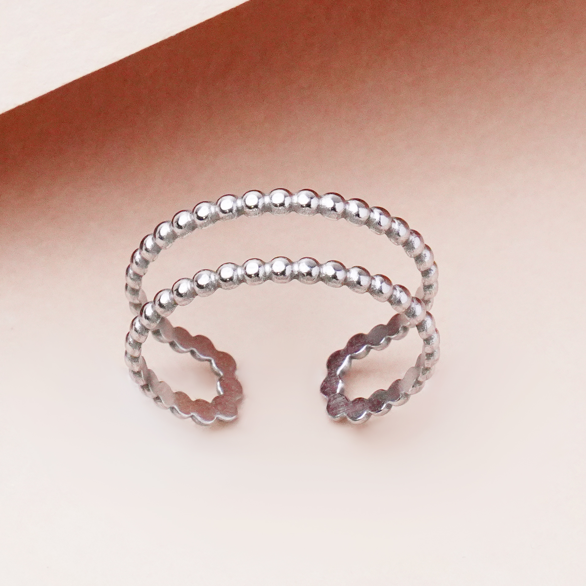 یه انگشتر ظریف و در عین حال متفاوت که جزئیات ساچمهای روی دورش، حس بافت و عمق به طراحی سادهی رینگ میده. وقتی روی دست قرار میگیره، هم مینیمال و شیک دیده میشه و هم یه حس خاص و چشمنواز به استایل اضافه میکنه. این انگشتر از خانه اکسسوری کیان، انتخابی عالی برای کسانیه که دنبال اکسسوریهای ساده با جزئیات هنری و ظریف هستن.