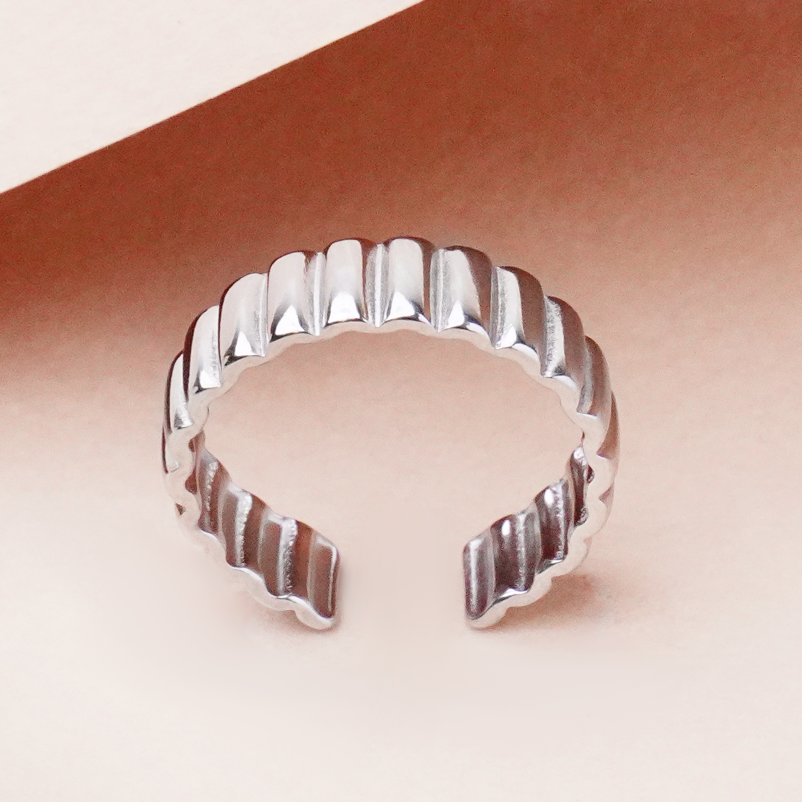 یه انگشتر ساده اما پرجزئیات که شیارهای روی سطحش، حس عمق و حرکت به رینگ میده. وقتی روی دست قرار میگیره، هم مینیمال و شیک دیده میشه و هم کمی مدرن و متفاوت به نظر میرسه. این انگشتر از خانه اکسسوری کیان، انتخابی عالی برای کسانی که دنبال اکسسوریهای ساده اما با یک جزئیات خاص و چشمنواز هستن.