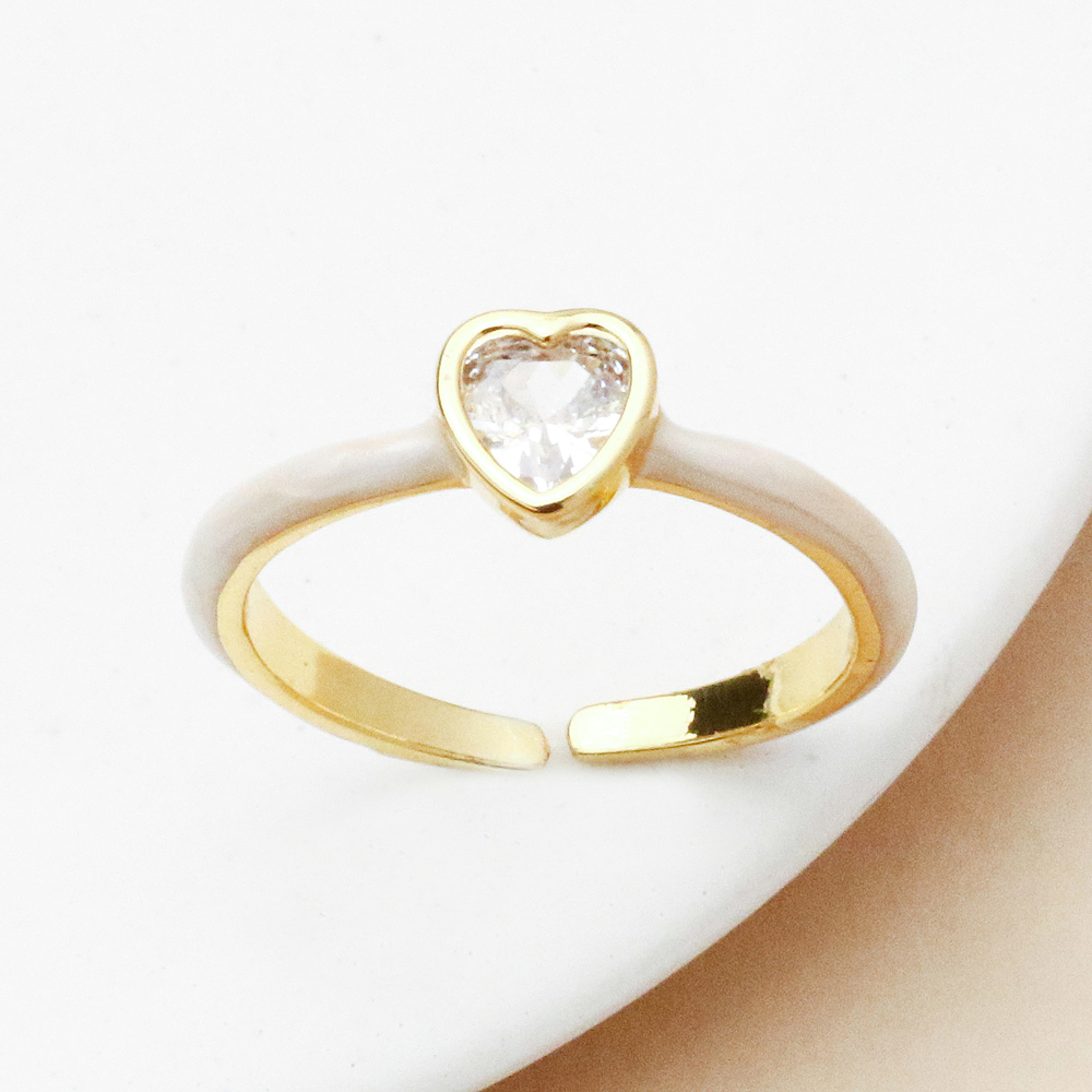 انگشتر رینگ سفید قلبی با طراحی ظریف و ترکیب فرم رینگ با قلب، جلوهای لطیف و عاشقانه به استایل شما میبخشد. رنگ سفید قلب در کنار فرم ساده رینگ، حس پاکی و ظرافت ایجاد کرده و ظاهر انگشتر را دلنشین و چشمنواز میکند.