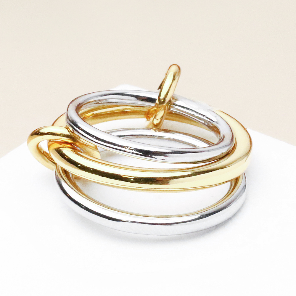 انگشتر سه رینگ تک طلایی با طراحی مدرن و چندلایه، انتخابی شیک و متفاوت برای استایل‌های مینیمال و امروزی است. ترکیب سه رینگ ظریف با رنگ طلایی درخشان، جلوه‌ای خاص و منظم روی دست ایجاد می‌کند و بدون شلوغی، زیبایی خود را در سادگی نشان می‌دهد. آبکاری باکیفیت و ساخت سبک این مدل، درخششی ماندگار و استفاده‌ای راحت در طول روز را فراهم می‌کند. این انگشتر خاص در خانه اکسسوری کیان با دقت در طراحی و کیفیت عرضه شده تا ترکیبی از سادگی، دوام و قیمت مناسب را تجربه کنید.