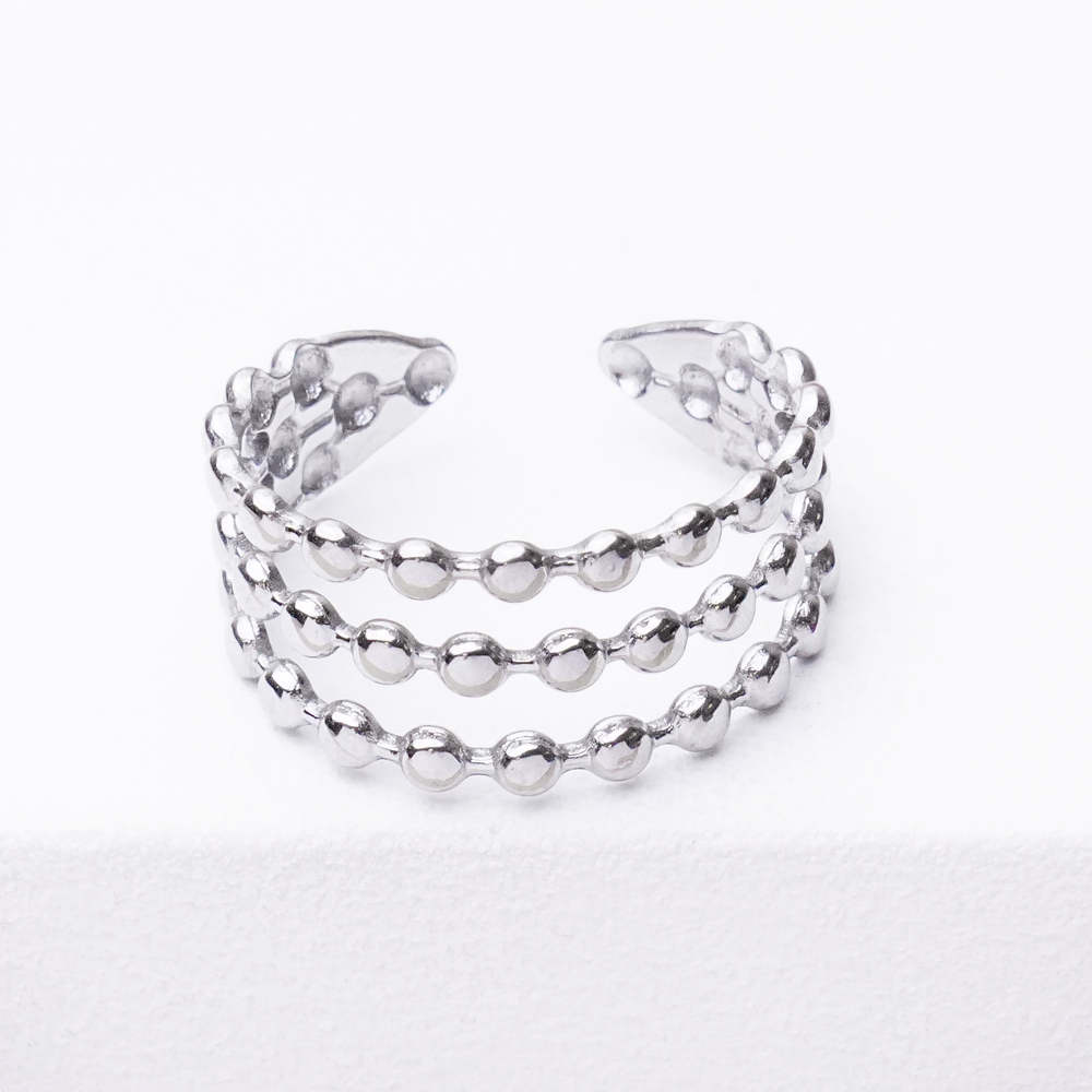 یه انگشتر با طراحی ظریف و در عین حال پرجزئیات که از سه رینگ باریک و ساچمهای ساخته شده. این ترکیب باعث میشه روی دست جلوهای لایهلایه و پویا داشته باشه، بدون اینکه شلوغ یا سنگین به نظر برسه. طراحی ریز و مینیمالش، انگشتر رو برای استفادهی روزمره مناسب میکنه و همزمان حس مدرن و متفاوتی به استایل اضافه میکنه. از خانه اکسسوری کیان، انتخابی ایدهآل برای کسانی که دنبال اکسسوریهای ظریف، شیک و چشمگیر هستن.