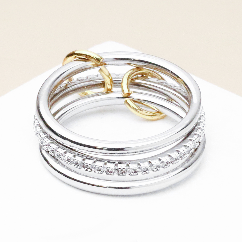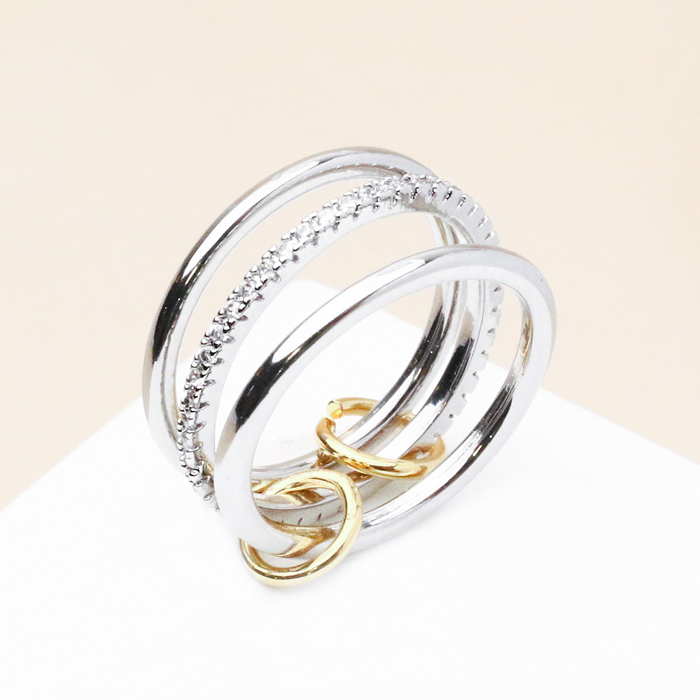 انگشتر سه رینگ نقره ای نگین دار با طراحی ظریف و چندلایه، جلوهای لوکس و چشمنواز به دستان شما میبخشد. ترکیب سه رینگ نقره ای در کنار نگینهای درخشان، حالتی مدرن و خاص ایجاد کرده که بدون نیاز به چند انگشتر جداگانه، استایلی کامل و متفاوت میسازد. رنگ نقره ای براق با آبکاری باکیفیت، درخششی جذاب داشته و در کنار ظرافت ساخت، گزینهای مناسب برای استفاده روزمره و مهمانی است. این مدل جذاب در خانه اکسسوری کیان با دقت در انتخاب کیفیت و طراحی عرضه شده تا ترکیبی از زیبایی، دوام و قیمت مناسب را تجربه کنید.