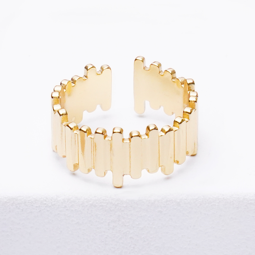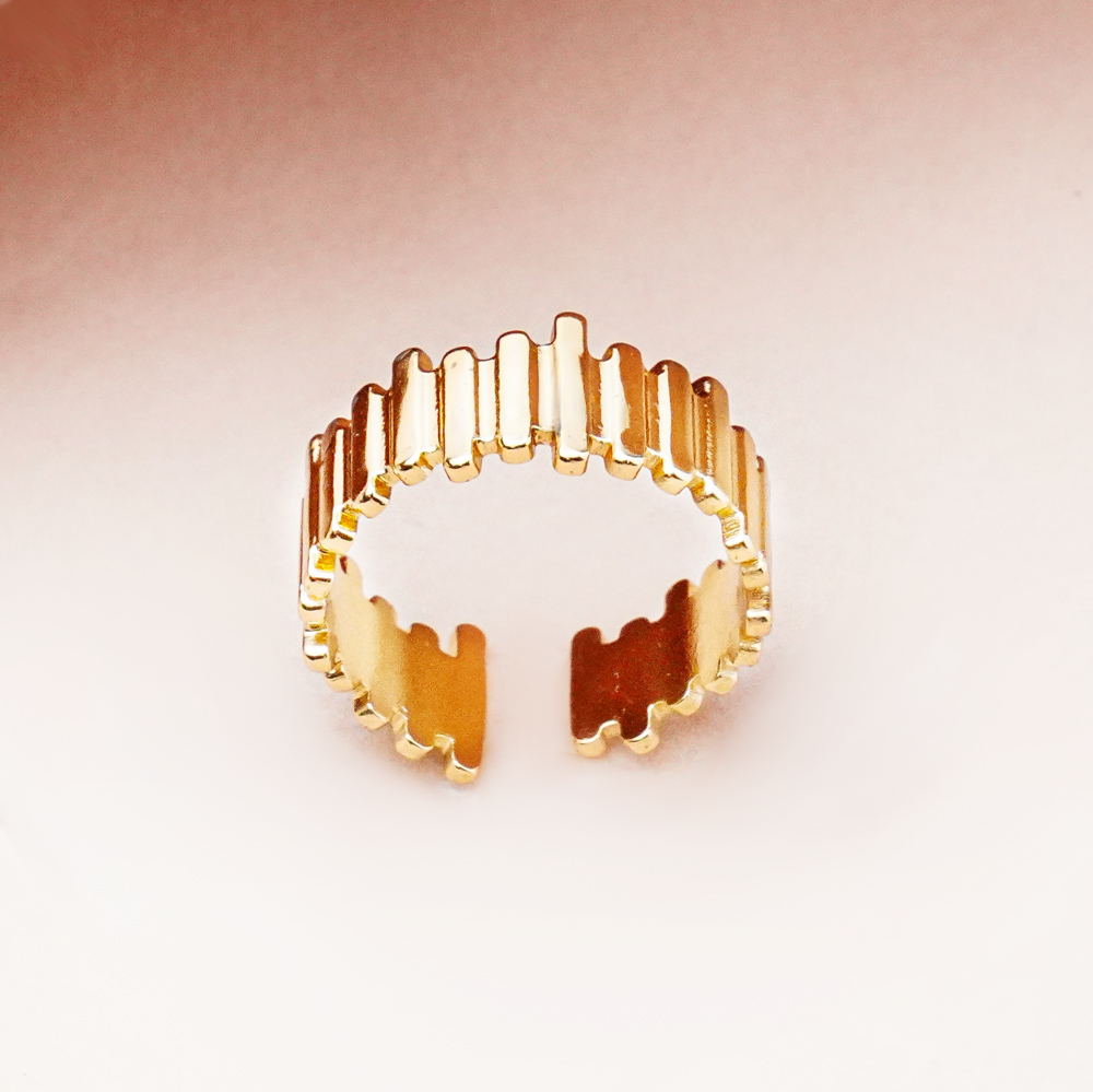 انگشتر شیاردار نامنظم با طراحی مدرن و فرم آزاد، جلوهای متفاوت و خاص به استایل شما میبخشد. شیارهای نامنظم روی بدنه انگشتر، بافت و عمق بصری جذابی ایجاد کرده و ظاهر آن را غیرکلیشهای و چشمنواز میکند.