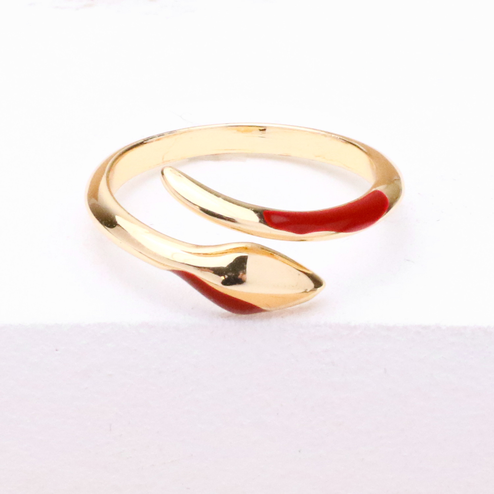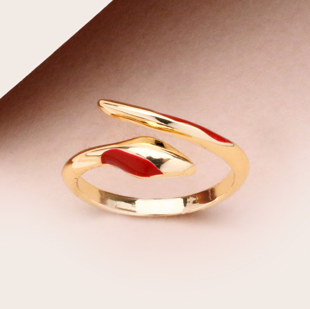انگشتر طلایی قرمز ماری با طراحی الهامگرفته از فرم مار، جلوهای جسورانه و متفاوت به استایل شما میبخشد. ترکیب رنگ طلایی با جزئیات قرمز، ظاهری خاص و چشمگیر ایجاد کرده و این انگشتر را به اکسسوریای منحصربهفرد تبدیل میکند.