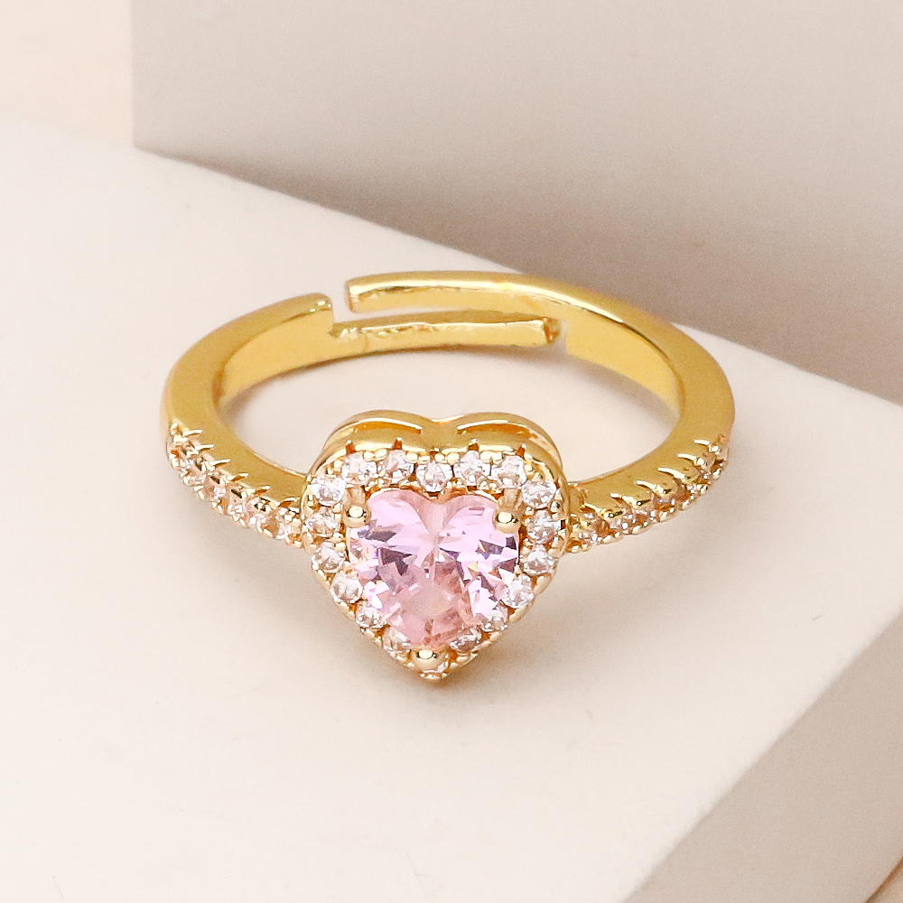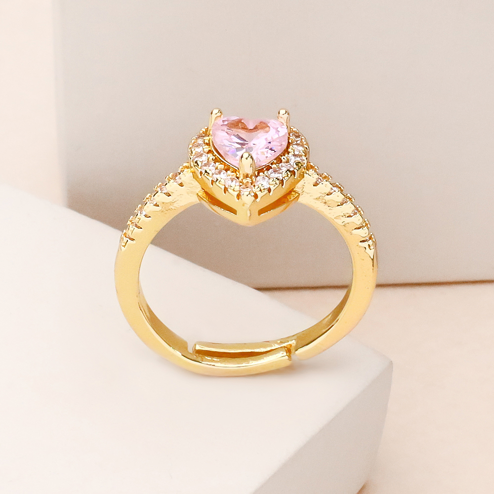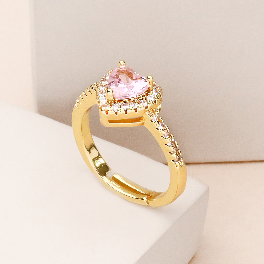 انگشتر قلب صورتی طلایی دور نگین با طراحی ظریف و چشمنواز، ترکیبی دلنشین از لطافت رنگ صورتی و درخشش فلز طلایی را به نمایش میگذارد. نگین قلبیشکل صورتی در مرکز این انگشتر قرار گرفته و حلقهی طلاییِ دور نگین، جلوهای شیک، منظم و کمی مجلل به آن بخشیده است؛ انگار قلب کوچکی که با یک قاب طلایی، حسابی لجبازیِ بامزهای با درخشش راه انداخته است.
