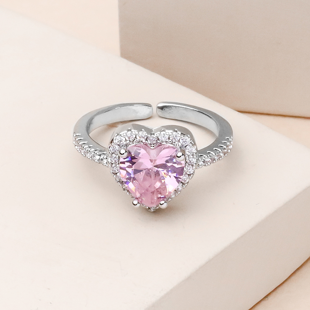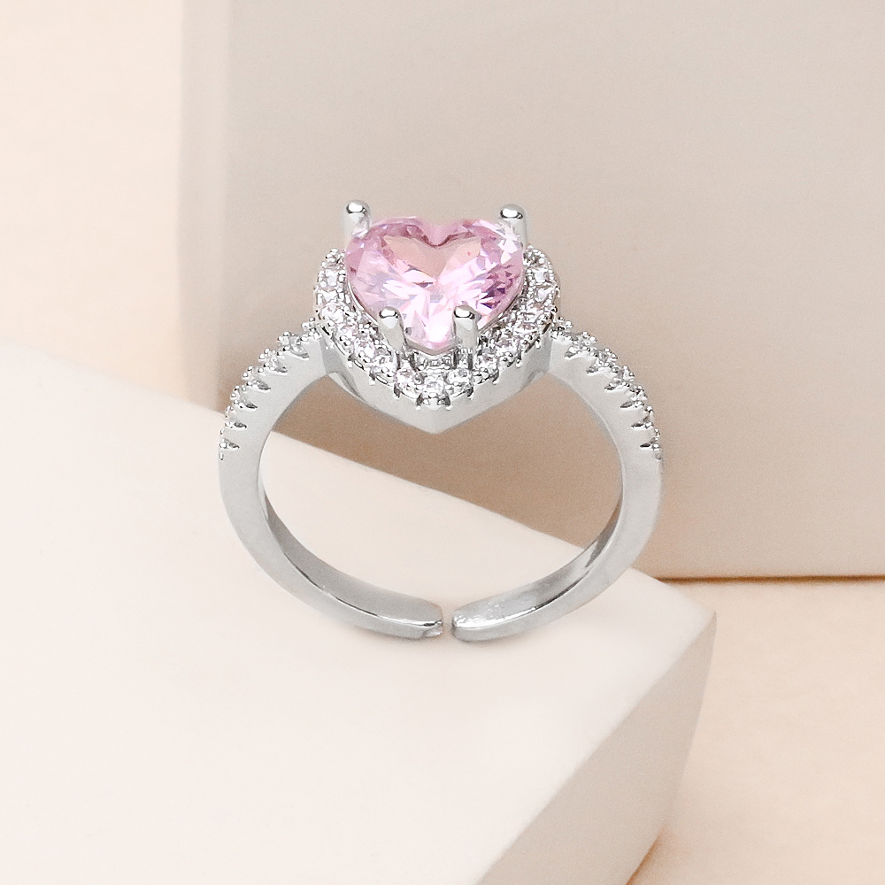 انگشتر قلب صورتی نقره ای دور نگین با طراحی ظریف و چشمنواز، ترکیبی دلنشین از لطافت رنگ صورتی و درخشش فلز نقره ای را به نمایش میگذارد. نگین قلبیشکل صورتی در مرکز این انگشتر قرار گرفته و حلقهی نقره ای دور نگین، جلوهای شیک، منظم و کمی مجلل به آن بخشیده است؛ انگار قلب کوچکی که با یک قاب نقره ای، حسابی لجبازیِ بامزهای با درخشش راه انداخته است.