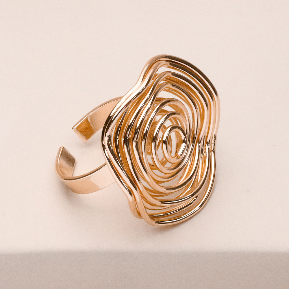 رنگ طلایی براق، درخشش و حس لوکس‌تری به طراحی اضافه کرده و این مدل را به انتخابی مناسب برای استایل‌های روزمره خاص و نیمه‌رسمی تبدیل می‌کند. انگشتر مارپیچ بزرگ طلایی گزینه‌ای ایده‌آل برای افرادی است که به اکسسوری‌های جسور، متفاوت و مدرن علاقه دارند.