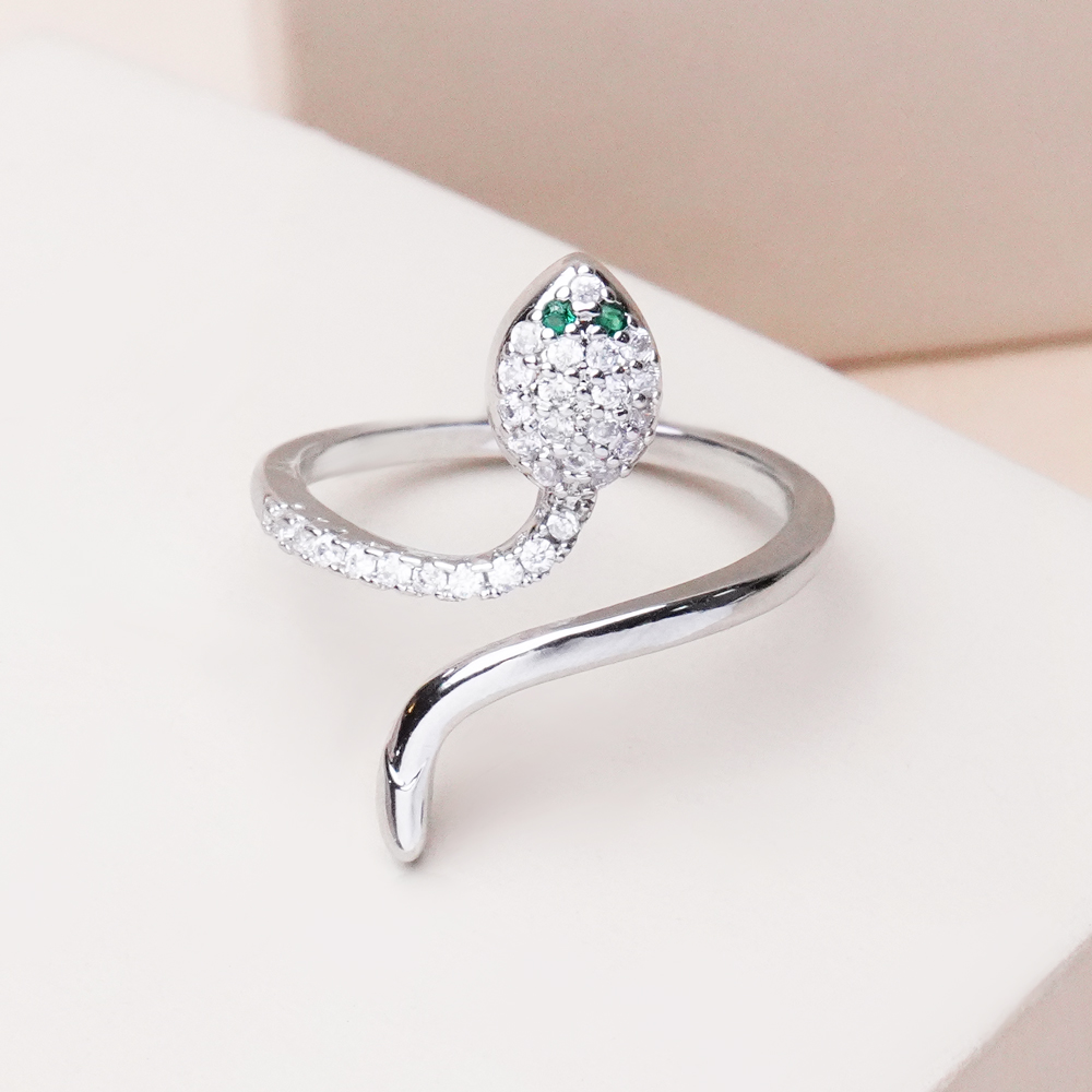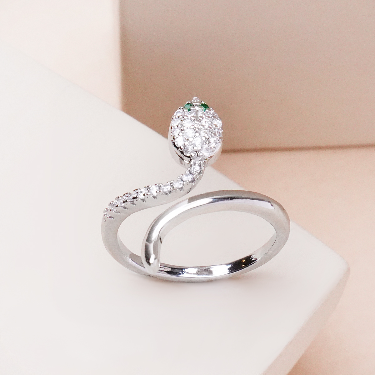 انگشتر ماری نقرهای با طراحی الهامگرفته از فرم مار، جلوهای جسورانه و مدرن به استایل شما میبخشد. فرم مارپیچ انگشتر در کنار نگینهای درخشان، ترکیبی چشمنواز ایجاد کرده و ظاهر آن را خاص و متفاوت نشان میدهد.