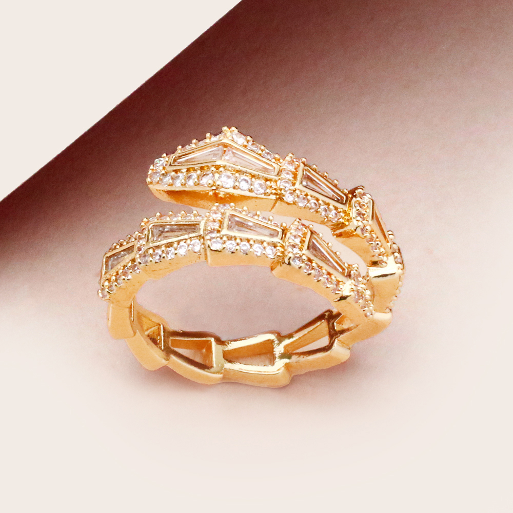 انگشتر مار طلایی نگیندار با طراحی الهامگرفته از فرم مار، جلوهای جسورانه و چشمگیر به استایل شما میبخشد. فرم مارپیچ در کنار نگینهای درخشان، ترکیبی خاص و لوکس ایجاد کرده و باعث میشود این انگشتر روی دست کاملاً به چشم بیاید.