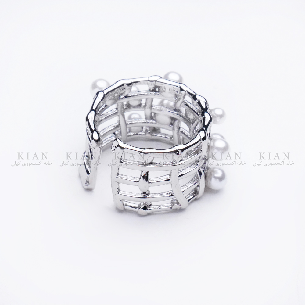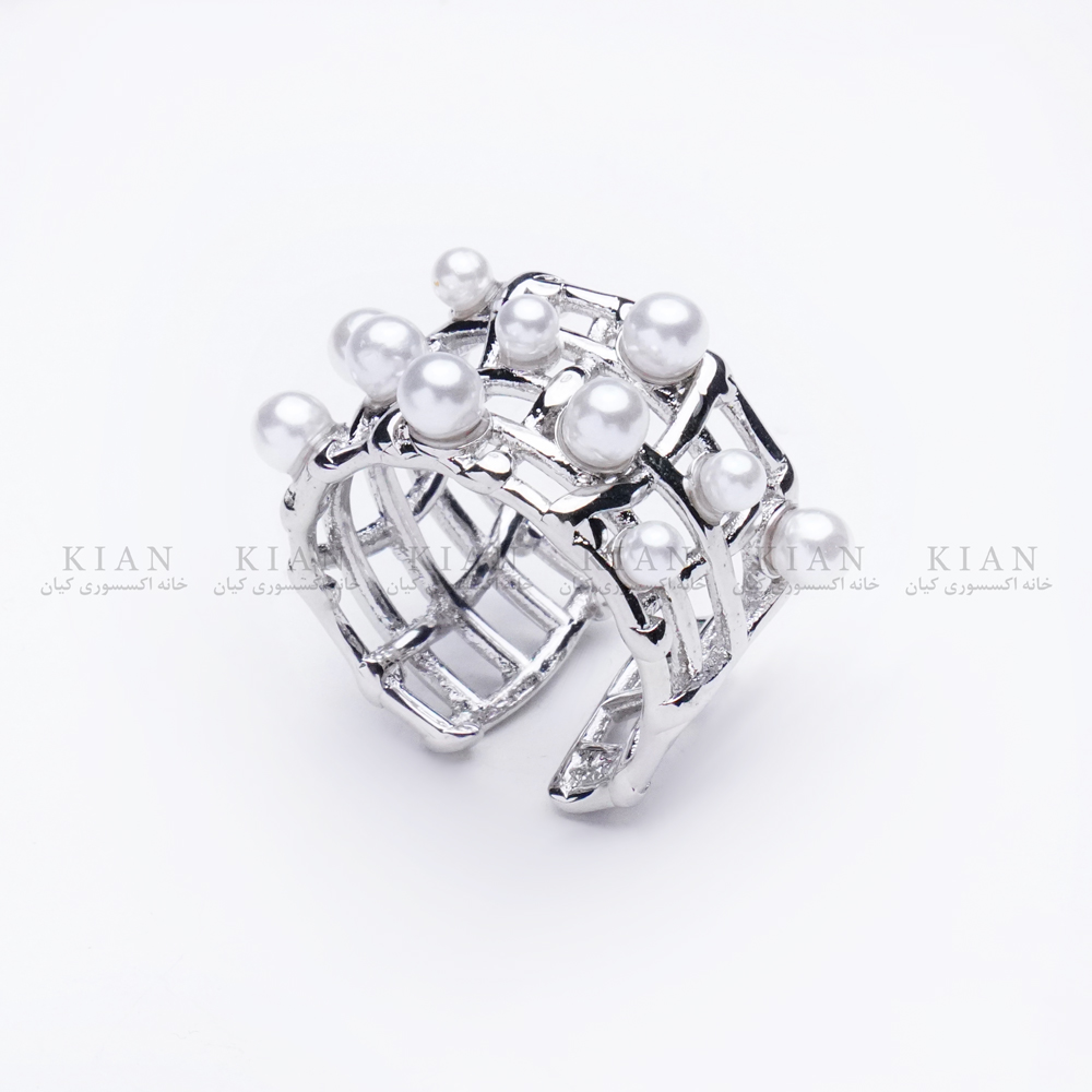 طراحی تراش دار با مروارید های سفید و درخشان، در ترکیب با رنگ نقره ای براق، این انگشتر رو به یه اکسسوری چشم نواز و ریبا تبدیل کرده.