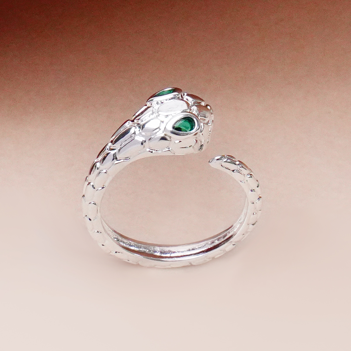 انگشتر نقرهای براق مار با طراحی الهامگرفته از فرم پیچخورده مار، انتخابی جسورانه و خاص برای استایلهای مدرن و متفاوت است. انحنای ظریف بدنه و سطح کاملاً صیقلی و براق آن، جلوهای درخشان و چشمگیر روی دست ایجاد میکند و بهراحتی نگاهها را به خود جلب میکند.