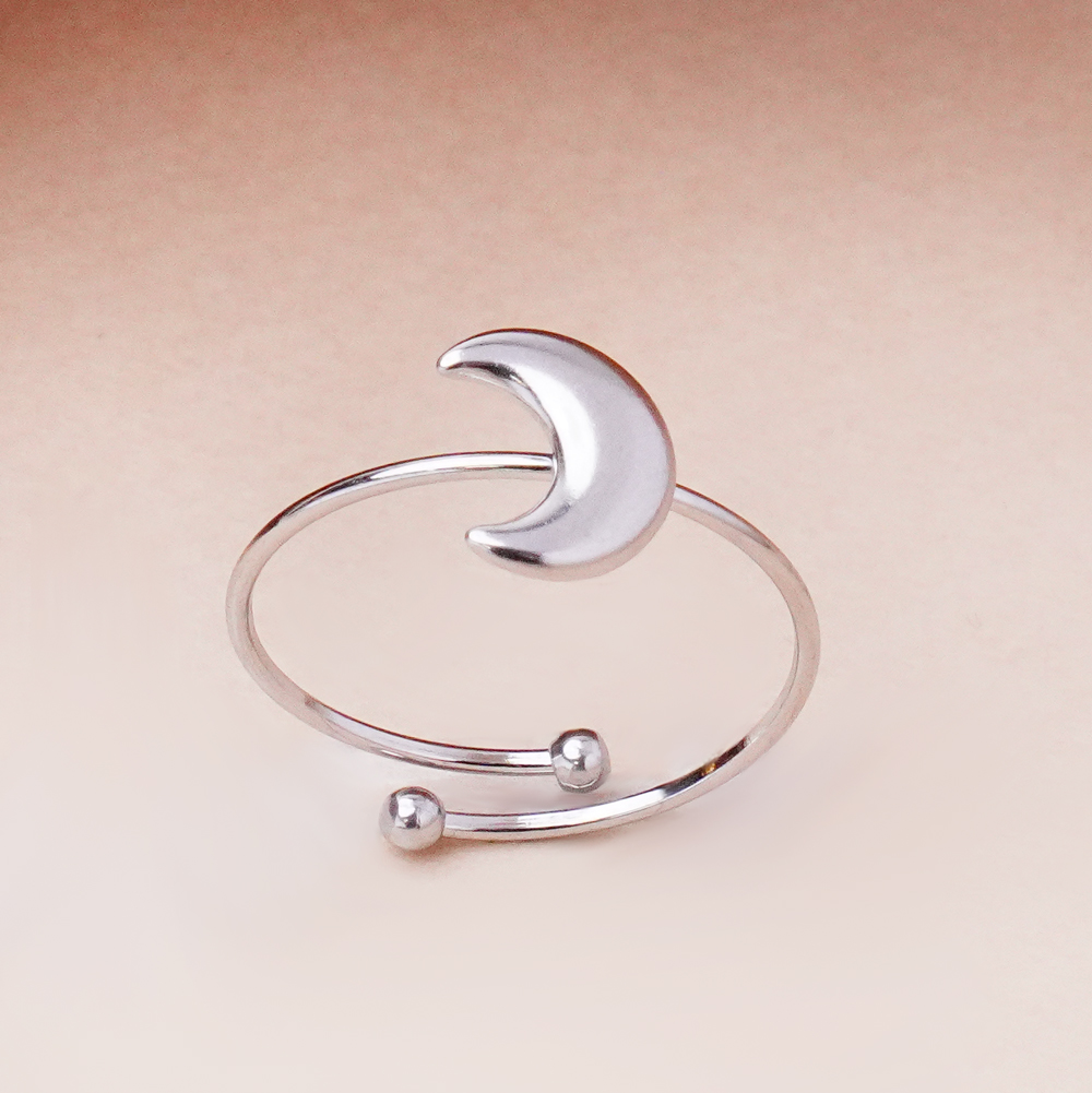 انگشتر نقرهای رینگی تک ماه با طراحی مینیمال و فرم حلقهای، جلوهای لطیف و شیک به استایل شما میبخشد. نگین یا فرم ماه روی انگشتر، حس آرامش و جذابیت ظریف را منتقل کرده و ظاهر آن را از طرحهای معمولی متمایز میکند.