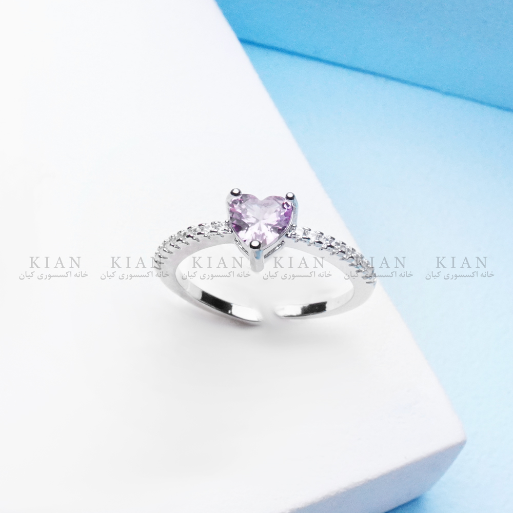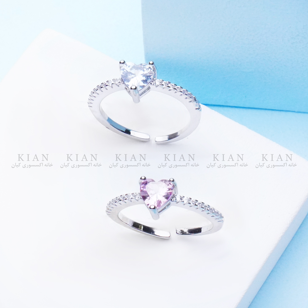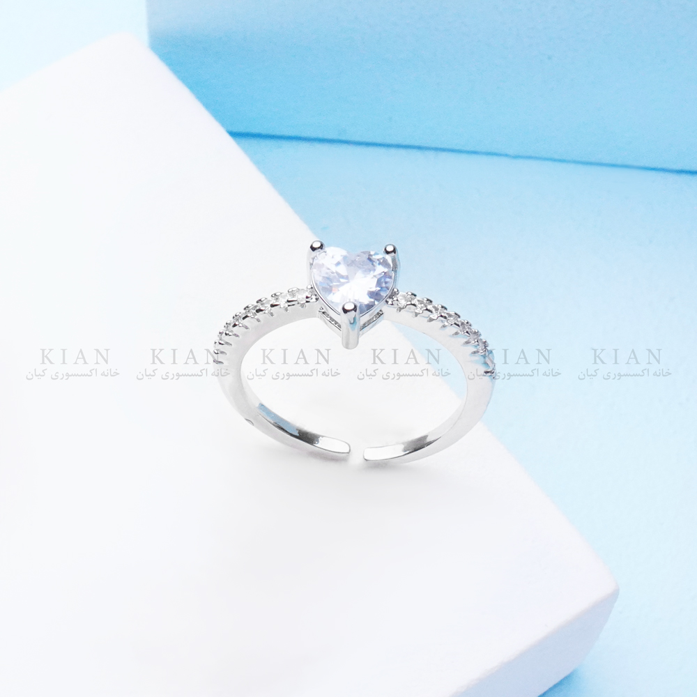 انگشتر های تک نگین قلبی ، انگشتر تک نگین قلب نقره ای