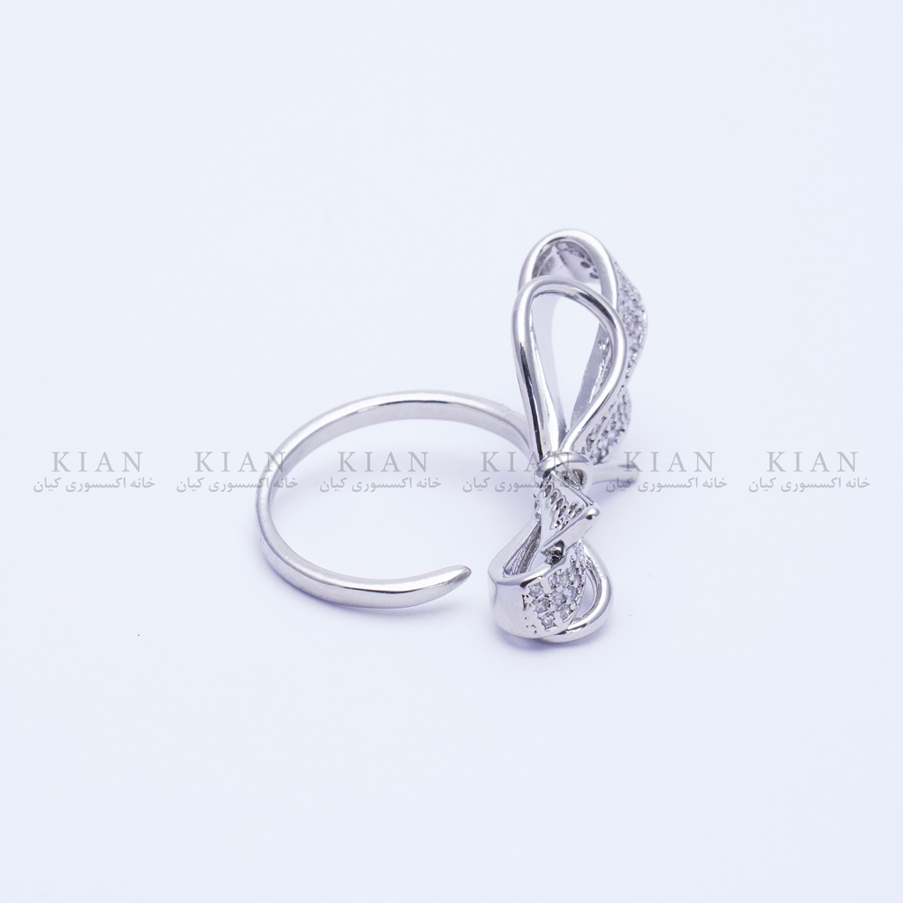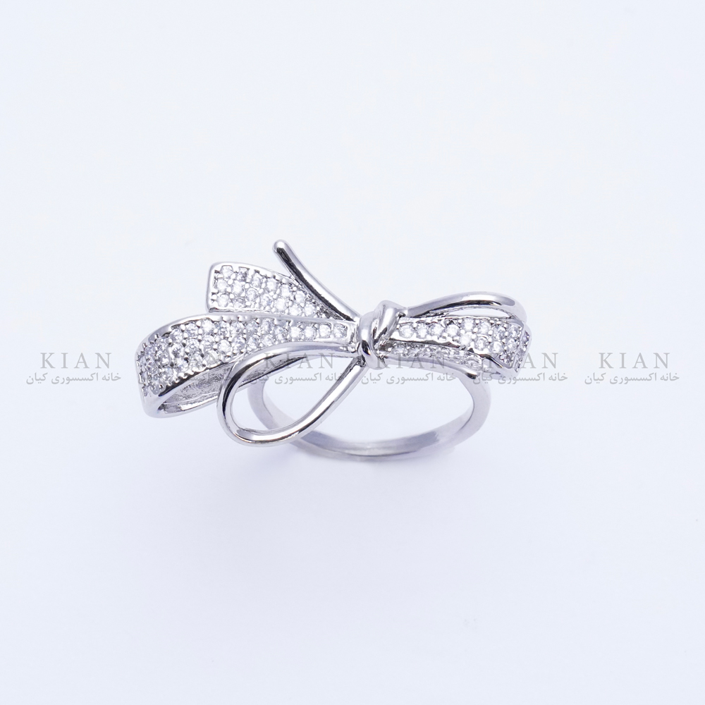 انگشتر پاپیونی با کمی نگین، معمولاً طراحیای شیک و دخترانه دارد. فرم پاپیونی به انگشتر حالتی ظریف و فانتزی میبخشد و نگینهای ریز روی آن، درخشش خاصی به انگشتان شما میدهد