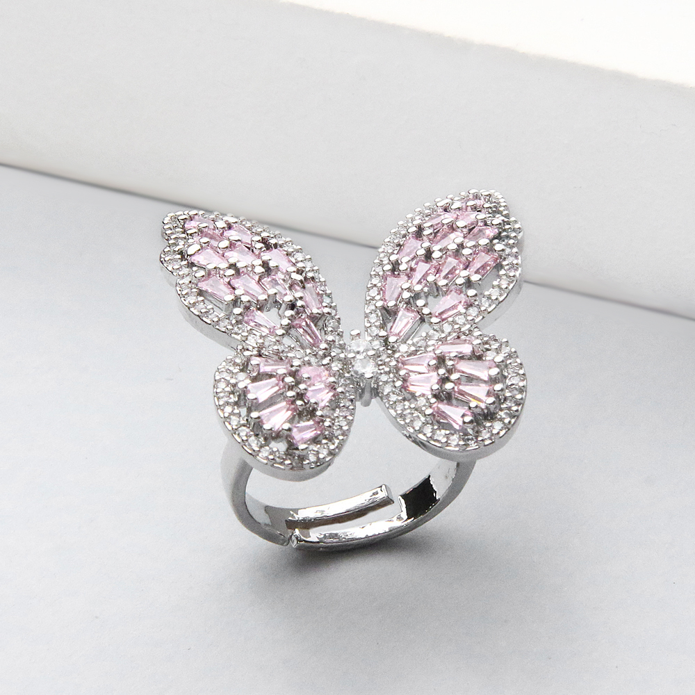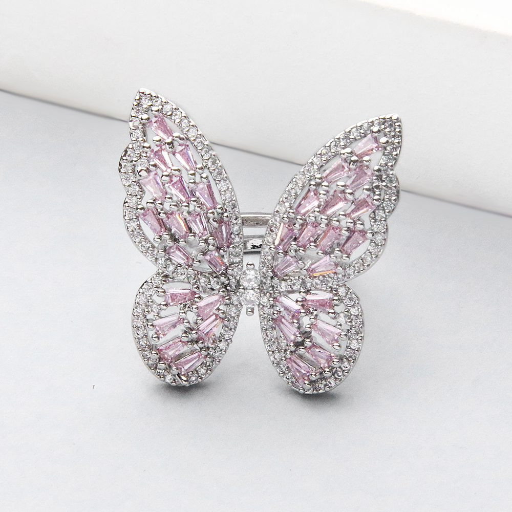 انگشتر پروانه نقره ای نگین صورتی ترکیبی دلنشین از لطافت، ظرافت و جلوهای فانتزی است. طراحی پروانه با نگینهای صورتی درخشان، حس لطیف و دخترانهای به استایل شما میبخشد و انتخابی جذاب برای افرادیست که به اکسسوریهای خاص و احساسی علاقه دارند.