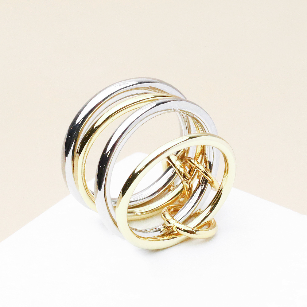 انگشتر چهار رینگ ساده با طراحی مینیمال و چندلایه، انتخابی شیک و مدرن برای استایل‌های روزمره و نیمه‌رسمی است. ترکیب چهار رینگ ظریف با فرم هماهنگ، جلوه‌ای خاص و منظم روی دست ایجاد می‌کند و بدون نگین، زیبایی خود را در سادگی نشان می‌دهد. رنگ براق و آبکاری باکیفیت این مدل، درخششی ظریف و ماندگار داشته و در کنار وزن سبک، استفاده‌ای راحت در طول روز را فراهم می‌کند. این انگشتر خاص در خانه اکسسوری کیان با دقت در طراحی و کیفیت عرضه شده تا ترکیبی از سادگی، دوام و زیبایی را تجربه کنید.