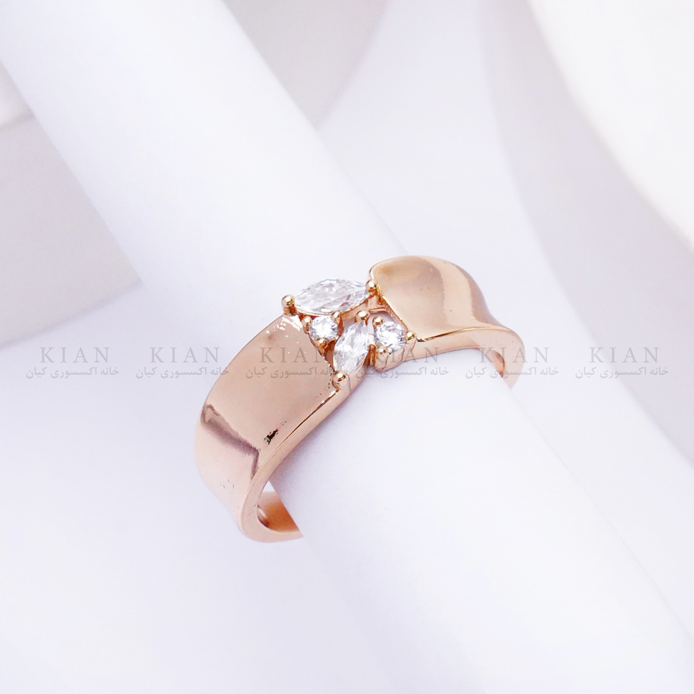 این انگشتر با بدنه‌ای طلایی ژوپینگ و طراحی باز (رِسایز فری) ساخته شده و در مرکز آن یک نگین کریستالی براق قرار گرفته است که با هر حرکت دست، نور را به زیبایی بازتاب می‌دهد. جزئیات ظریف در دو طرف نگین، ظاهر انگشتر را جذاب‌تر و حرفه‌ای‌تر کرده و آن را مناسب استایل‌های روزمره، رسمی و حتی مهمانی‌ها می‌سازد.