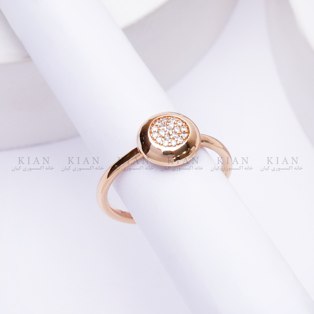 این انگشتر با بدنهی طلایی ژوپینگ ساخته شده و در قسمت جلویی آن یک دایره نگینکاریشده قرار دارد. نگینهای ریز و براق داخل دایره باعث میشوند انگشتر با کوچکترین نور بدرخشد و استایلی لطیف و در عین حال رسمی ارائه دهد. طراحی باز انگشتر امکان تنظیم بهتر سایز و قرارگیری راحت روی انگشت را فراهم میکند.