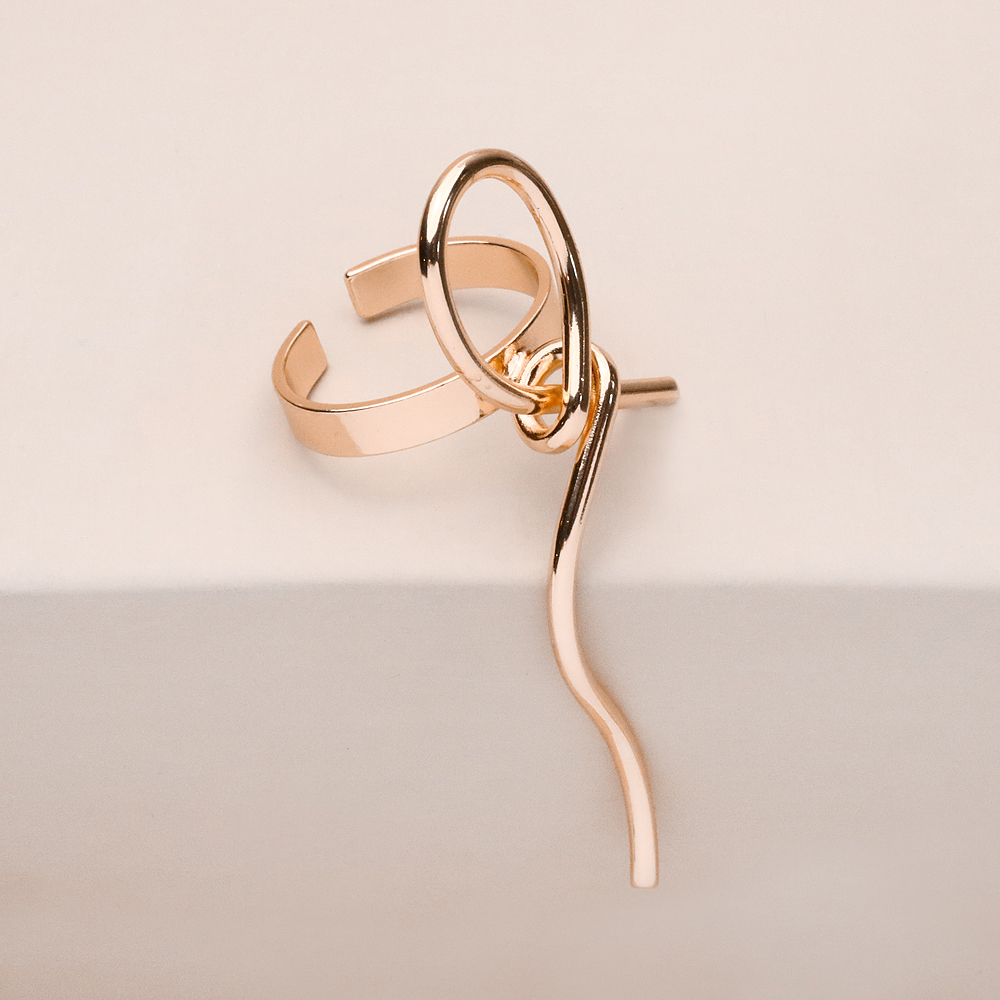 انگشتر گره دنباله‌دار طلایی با طراحی ظریف و چشم‌نواز، جلوه‌ای خاص و زنانه به استایل شما می‌بخشد. فرم گره در بخش اصلی انگشتر، در کنار دنباله‌ی ظریف و آویزگونه، ترکیبی جذاب ایجاد کرده که روی دست حرکتی لطیف و درخشان دارد.