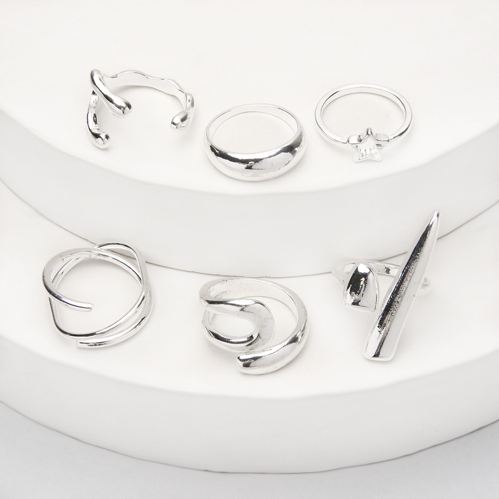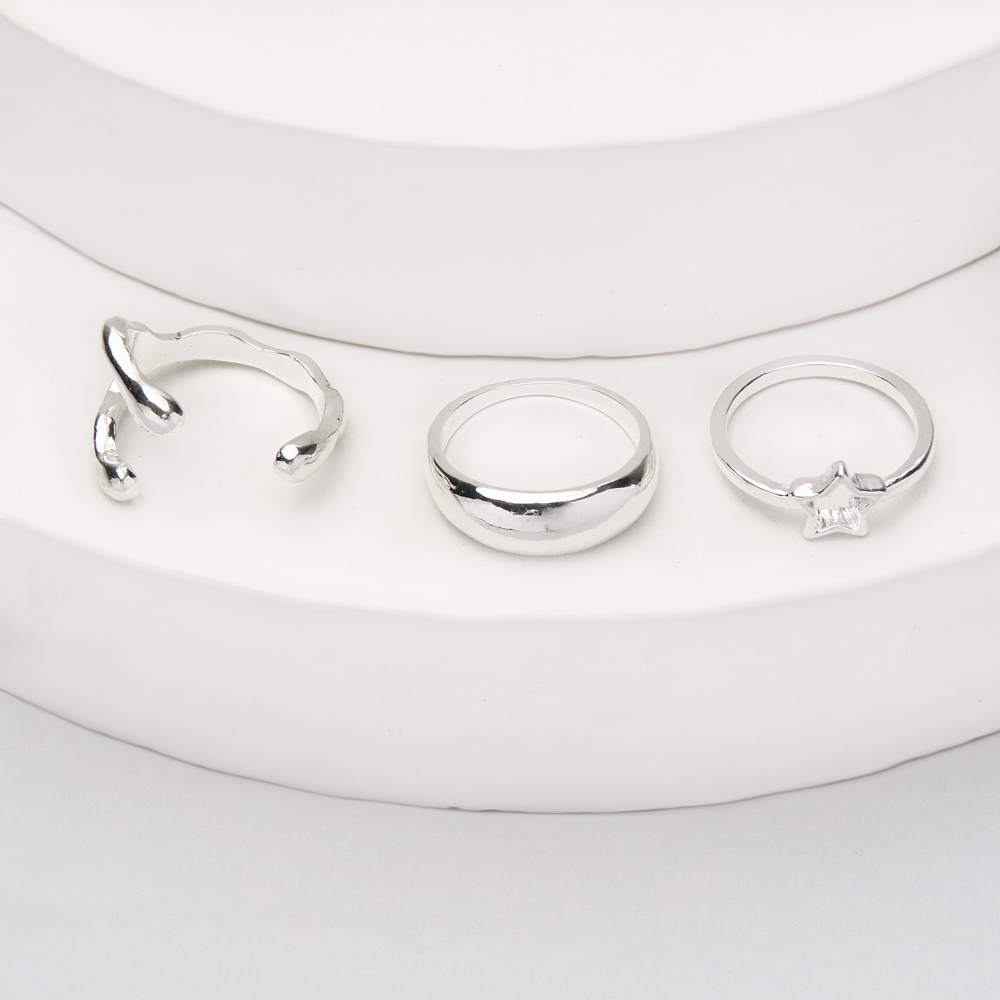 در خانه اکسسوری کیان، پک انگشتر نقرهای حلقه و ستاره با دقت در انتخاب طرح و مطابق با ترندهای روز ارائه شده تا ترکیبی از تنوع، ظرافت و جذابیت را یکجا به استایل شما اضافه کند.