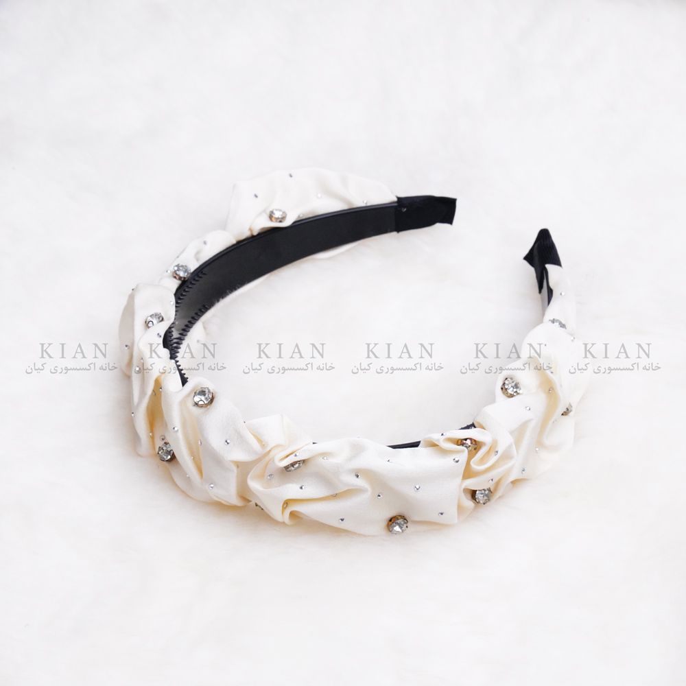 تل سفید نگین دار که این روزها ترند شده شکل تاج را به شکل کژوال تری تداعی می کنند و یک اکسسوری شیک و جذاب به شمار می آیند. این تل کاور شده و تزیین شده به وسیله نگین و کریستال میباشد و دارای نمای فوق العاده میباشد . کل کار به وسیله نخ نامرئی ، دوخته شده است ( بدون استفاده از چسب )